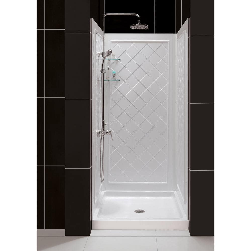 This comprehensive kit from DreamLine includes a coordinated SlimLine shower base and backwall panels to easily transform any shower space. The base features a sleek low profile design and is made of durable and attractive Acrylic/ABS materials. The included wall panels boast a modern tile pattern and are straightforward to install with a customizable fit. Both the base and panels are reinforced for added durability and come with a limited warranty. This all-in-one solution is perfect for any bathroom renovation project, and includes a single threshold slimline base and QWall-5 backwalls with a convenient center drain location. The glossy acrylic finish is resistant to scratches and stains, and the slip-resistant textured floor provides a safe bathing experience. Professional installation is recommended for optimal results.