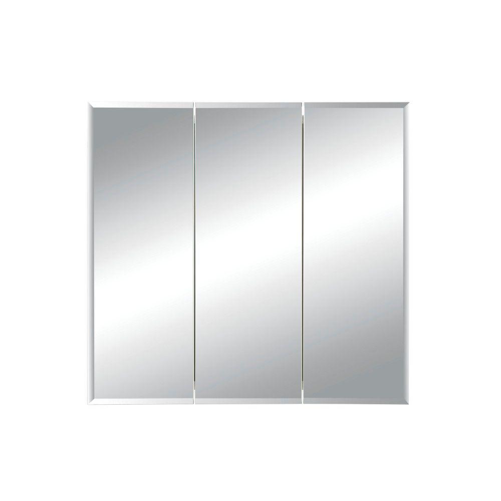 The Jensen Horizon 3 Door 36 in. W Recessed Medicine Cabinet features a tri-view mirror design offering a larger reflection area with frameless 1/2 in. beveled glass mirrors. The 2 steel shelves are adjustable, allowing you to fit a variety of container heights, and the white painted steel body has a durable rust resistant finish. The 90° euro-type concealed hinges allow a wide cabinet opening for easy access to all your items.