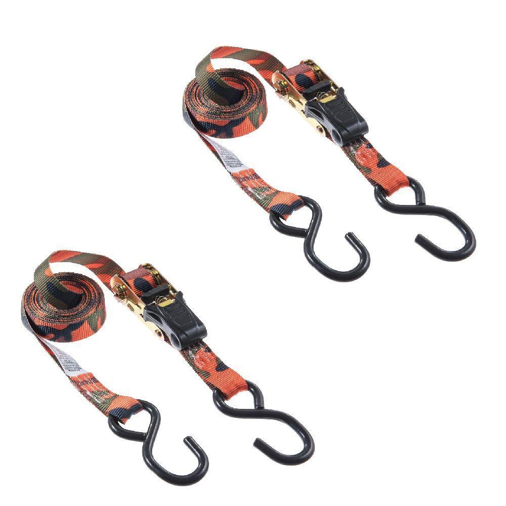12 ft. x 500 lb. Ratchet Tie-Down in Blaze Camo (2 per Pack)