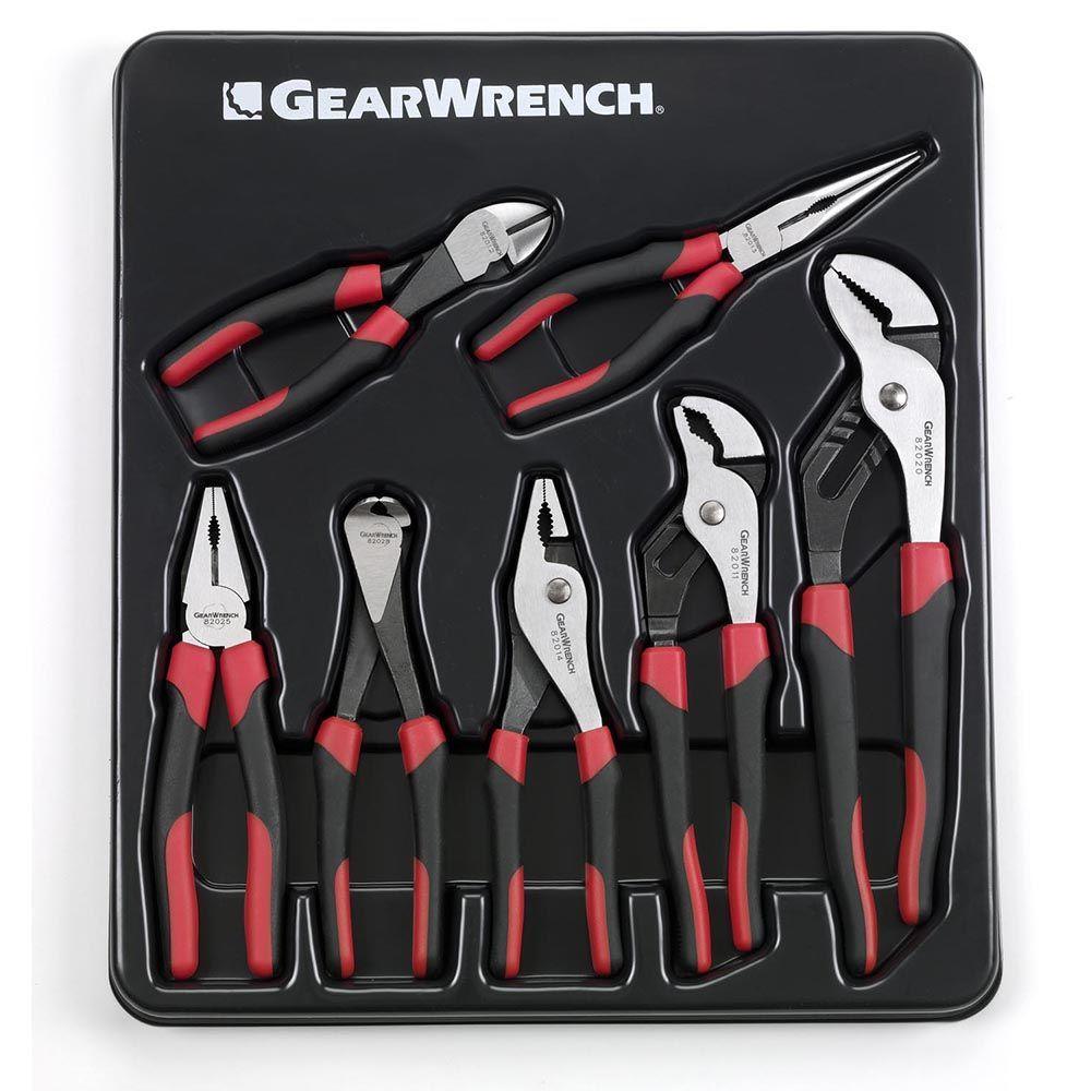 The GEARWRENCH Mixed Pliers Set is designed with curved back handles for added leverage and less slippage. It features finger tip end texture grip for improved access and exclusive round edged interior for comfort. It includes a slim recessed handle design and an assortment of pliers that can be used for any application.