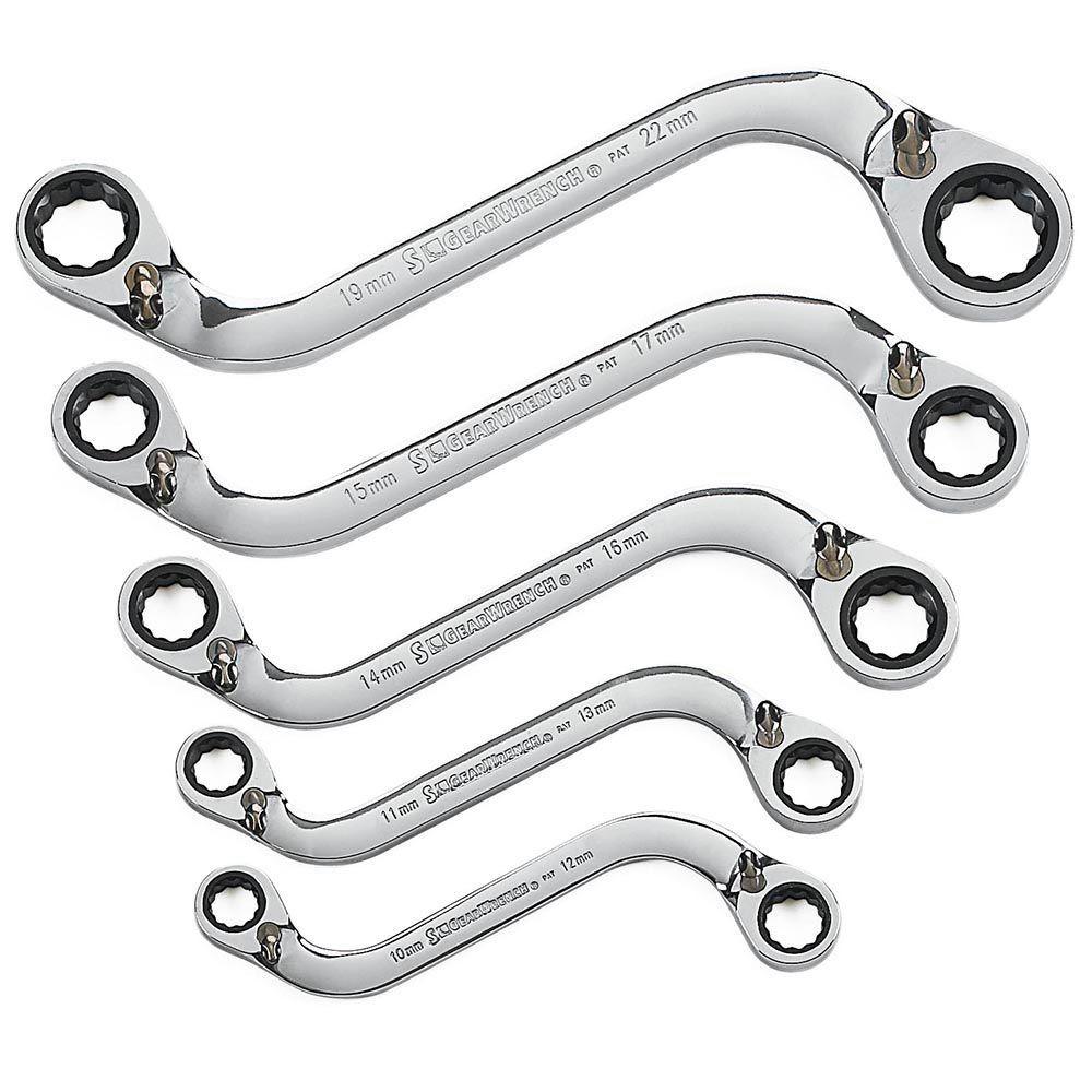 S-Shaped Reversible Double Box Ratcheting Wrench Set (5-Piece)