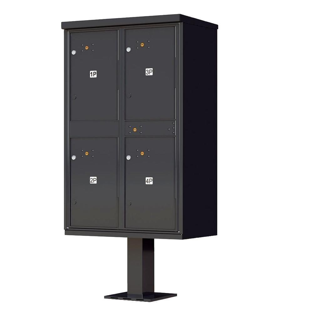 1590 Valiant Postal Gray 4-Compartment Parcel Lockers Pedestal Mount Mailbox