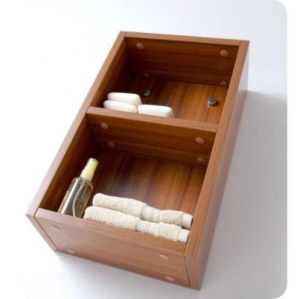 This small side cabinet comes with a Teak finish. It features 2 open storage areas. Plenty of storage space.