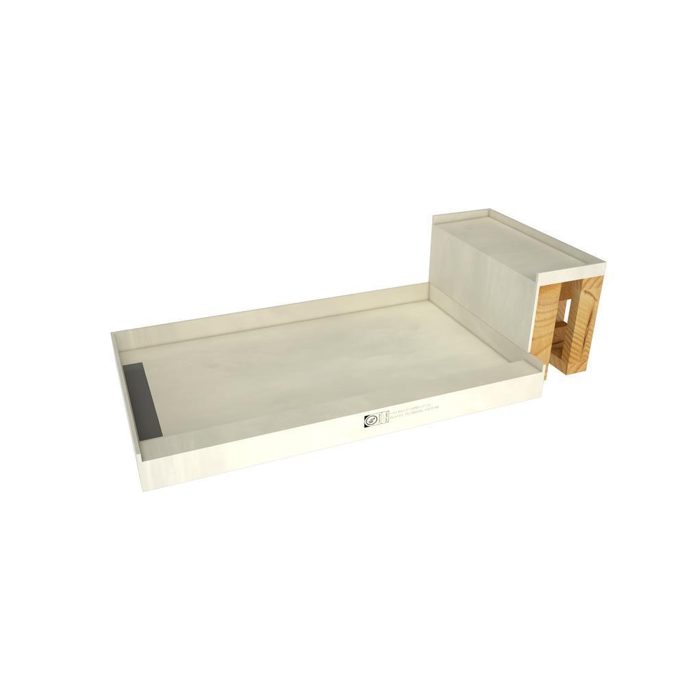 Base'N Bench 48 in. x 60 in. Single Threshold Shower Base and Bench Kit with Left Drain and Tileable Trench Grate