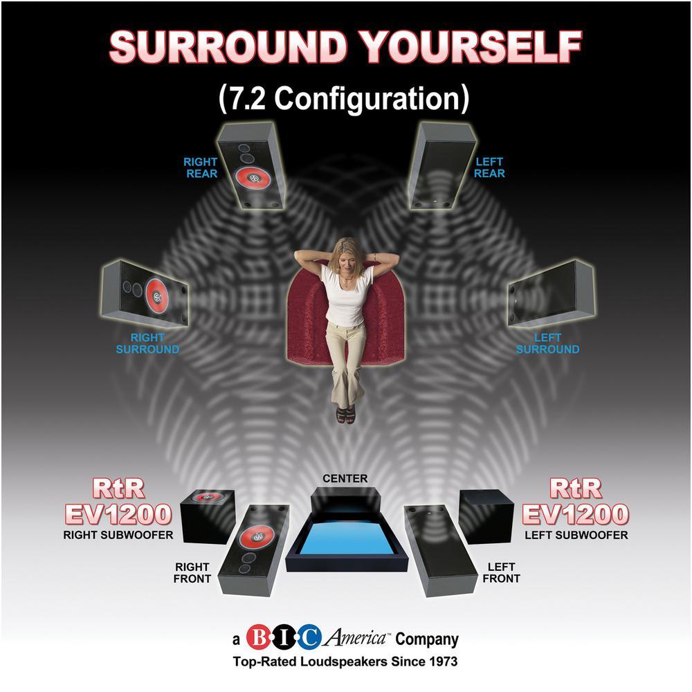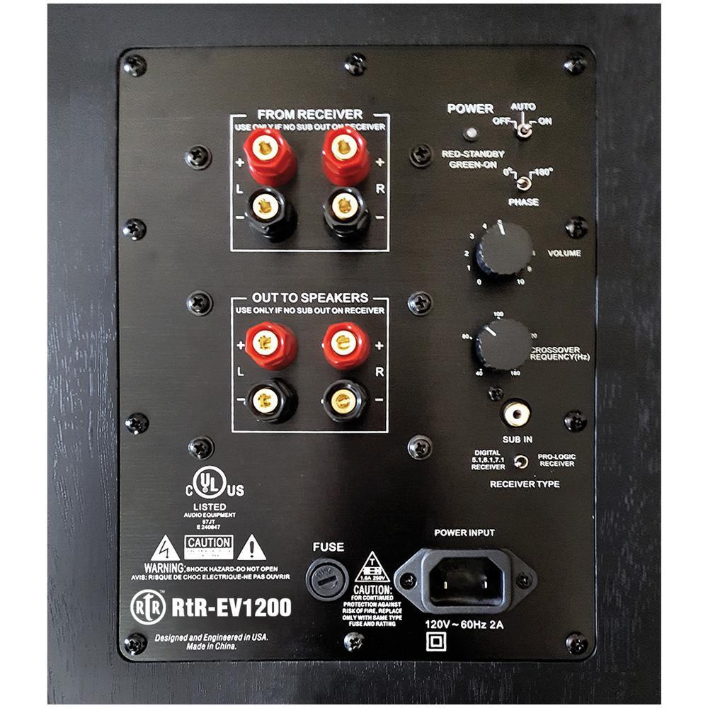Looking for an affordable high-performance subwoofer? The 12 in. RtR Eviction Series Front-Firing Powered Subwoofer from BIC America simply explodes with 475 watts peak/150 watts RMS of undistorted bass! This budget friendly subwoofer is powered by a built-in BASH-designed amplifier that offers extreme power without the wasted heat and energy of traditional amps. The EV1200 also has a heavy-duty custom-engineered woofer with a high-power magnet plus a flared port that eliminates port noise that can often plague other subs. This 8 ohm subwoofer is ideal for both music and home theater surround sound applications. It comes with a 5 year parts warranty on the driver, 2 years on the amplifier and associated electronics. So if you are looking for a powered subwoofer with high output for a low price, the RtR EV1200 is for you!