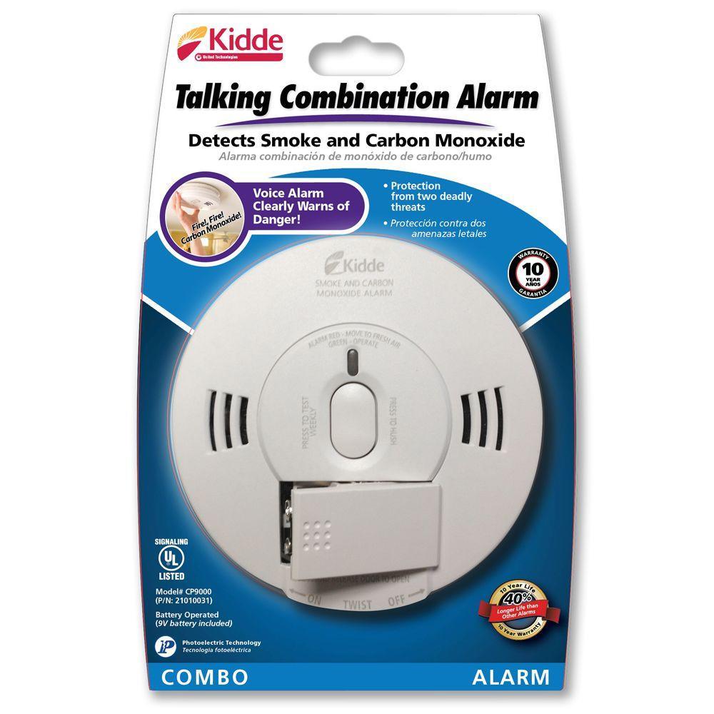 Kidde Combination Smoke and Carbon Monoxide alarm offers protection from both fire and CO in one device. This unit is a front load, 9-Volt battery operated alarm and features a beeping alert followed by a voice warning that clearly announces the danger by stating, "Fire, Fire, Fire!"or "Warning, Carbon Monoxide!". The designed front loading battery compartment makes battery replacement quick and easy. Utilizing a photoelectric sensor for detecting smoke and fire, this UL listed alarm also includes the world's most accurate CO sensing technology.