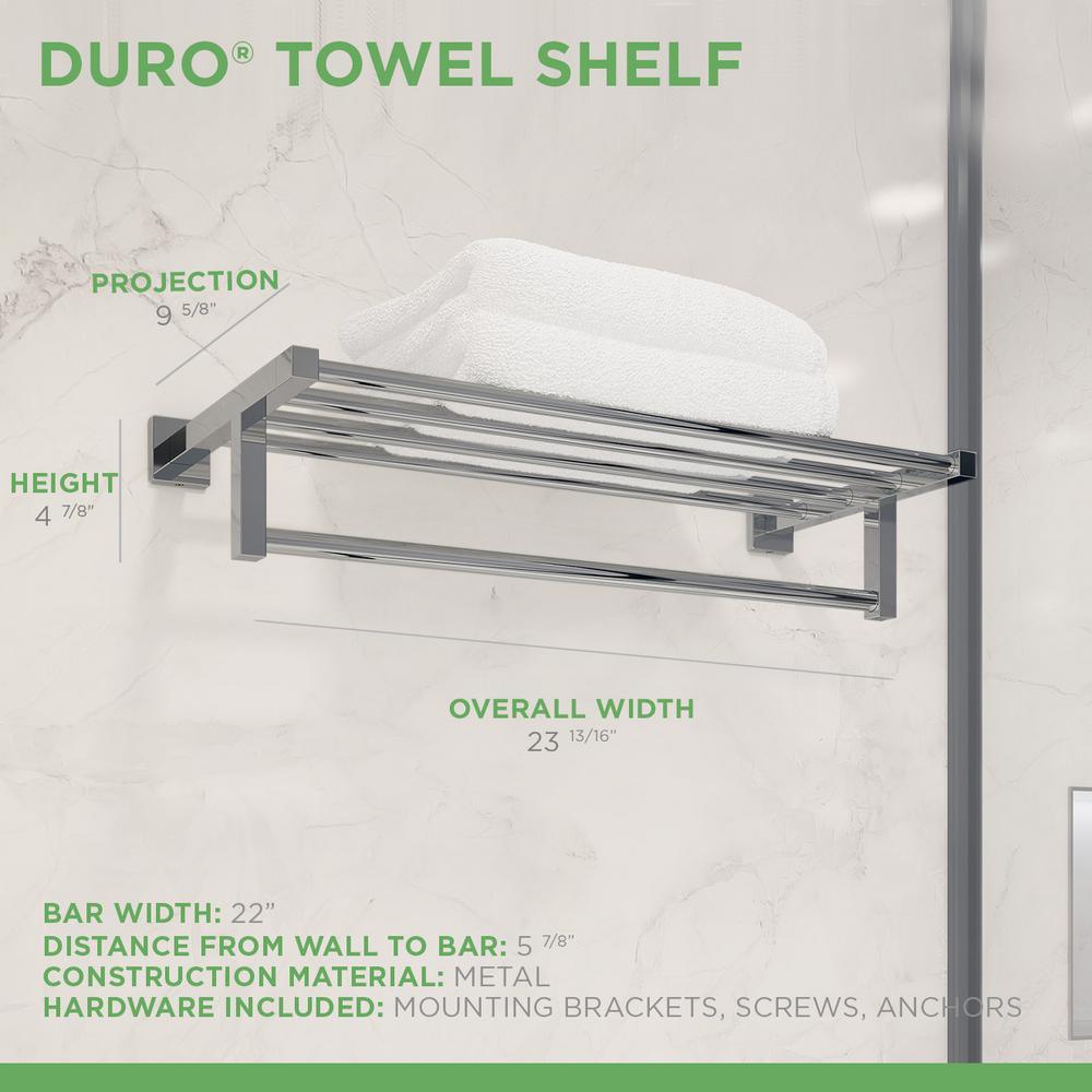 Duro 22 in. Wall-Mounted Towel Shelf with Bar in Polished Chrome