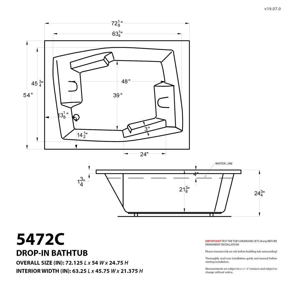 • Basin dimensions: 63.25" L x 45.75" W