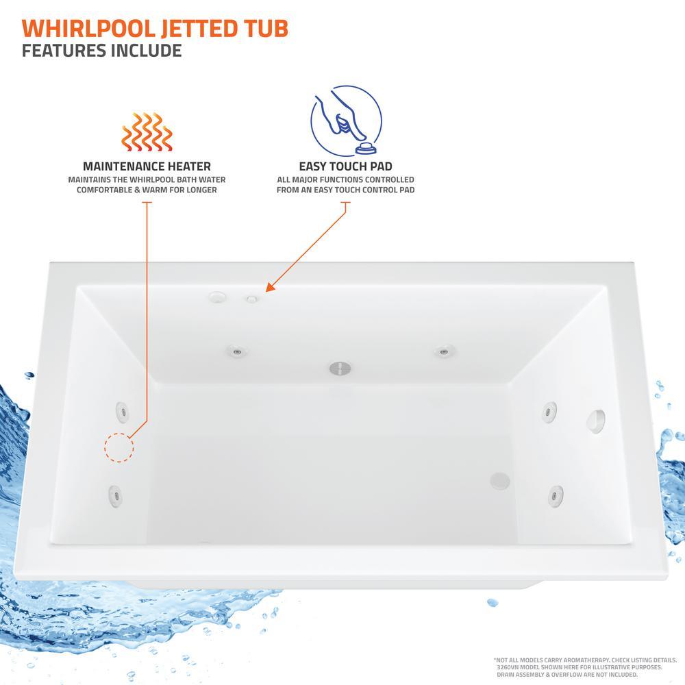 Tub/Shower Features Adjustable Jet Direction,Adjustable Jet Flow,Predrilled Drain Holes,Predrilled Overflow Holes