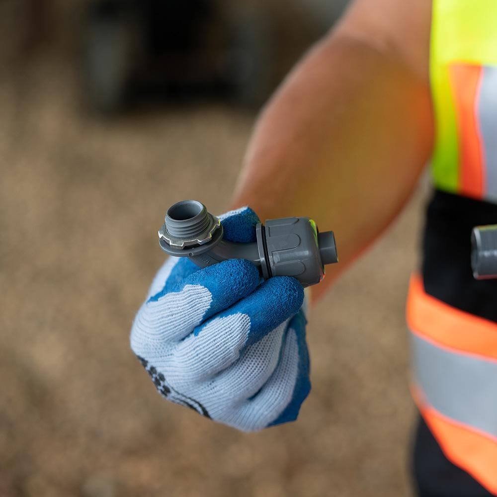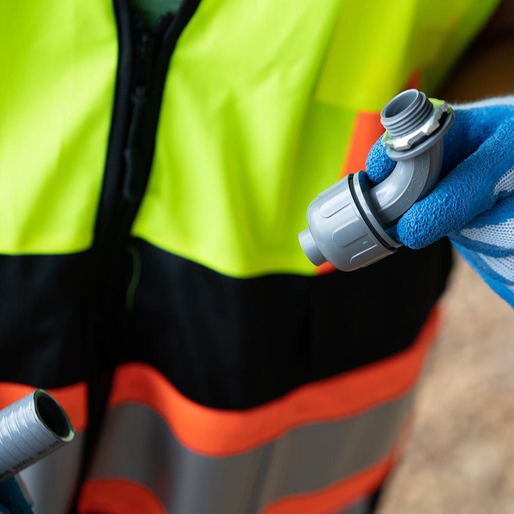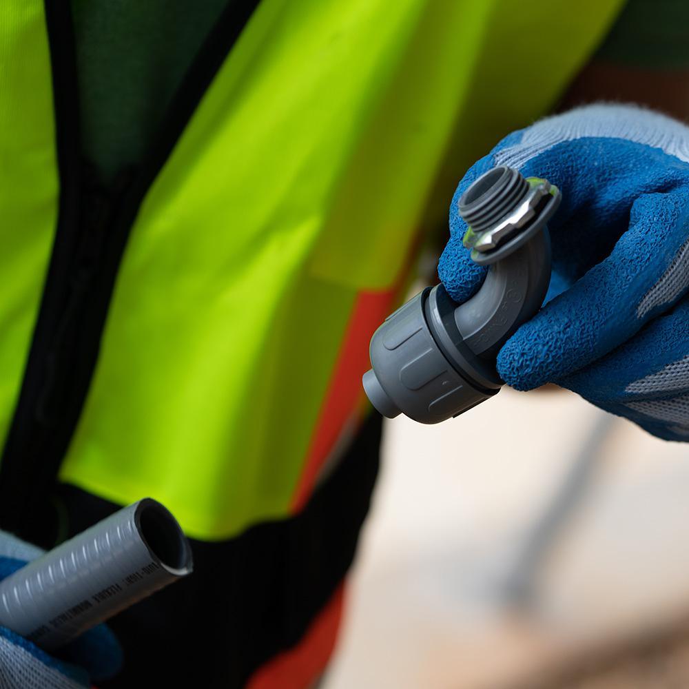 Southwire's Non-Metallic Liquid Tight Connectors are made to use with Type B Non-Metallic Liquid Tight Conduit. There is no threading of conduit or tubing required. Southwire's connectors give a superior liquid tight seal and pull out strength.