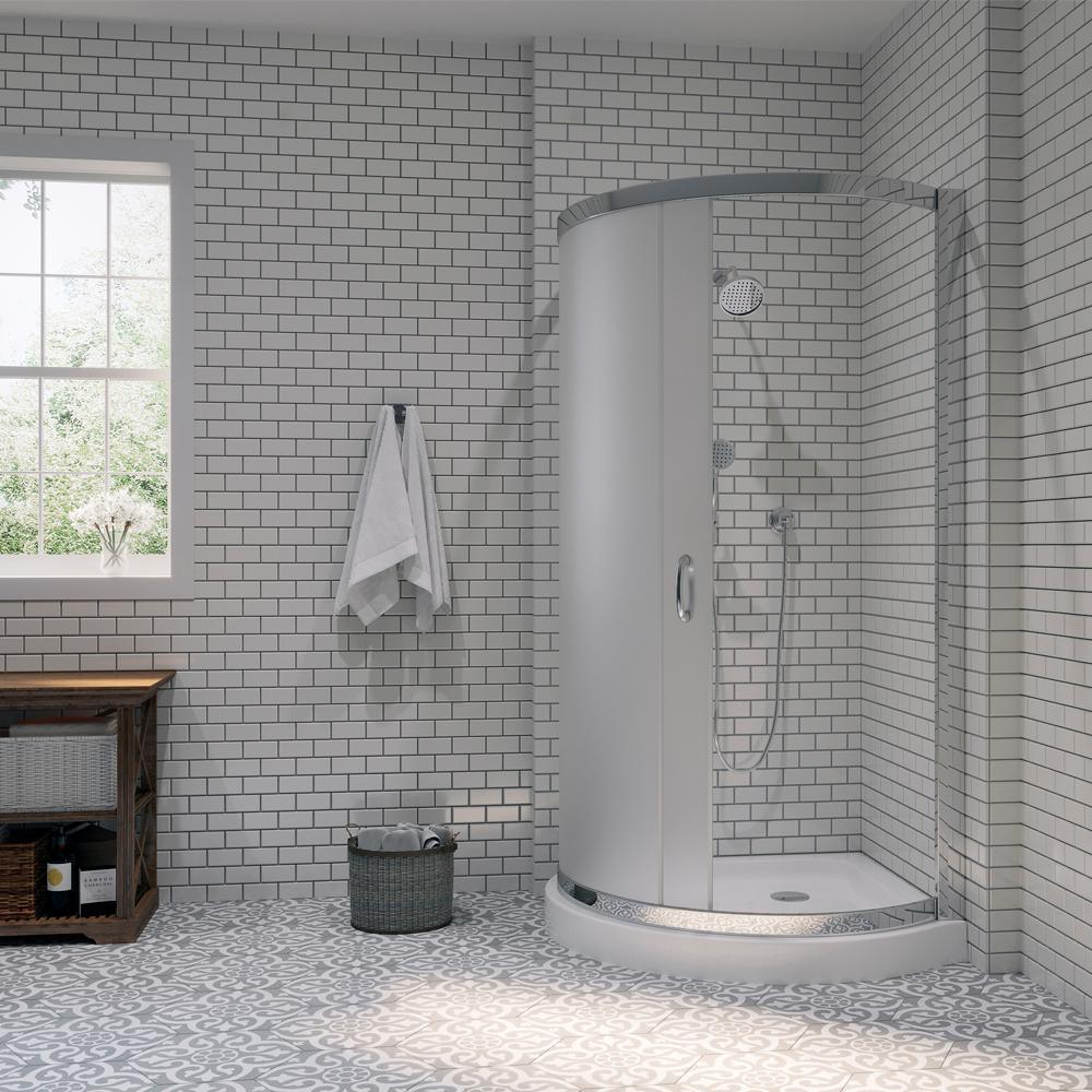 Combining functionality and style, the Breeze Premium Shower Kit is perfect for mid to larger sized bathrooms. This 2-piece, all-inclusive kit features a rounded acrylic base and a premium intimacy sliding door. Made of 6-mm frosted tempered glass, this kit will add a look of luxury to your bath so you can relax in style.