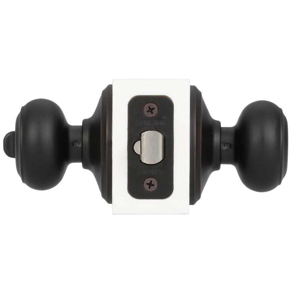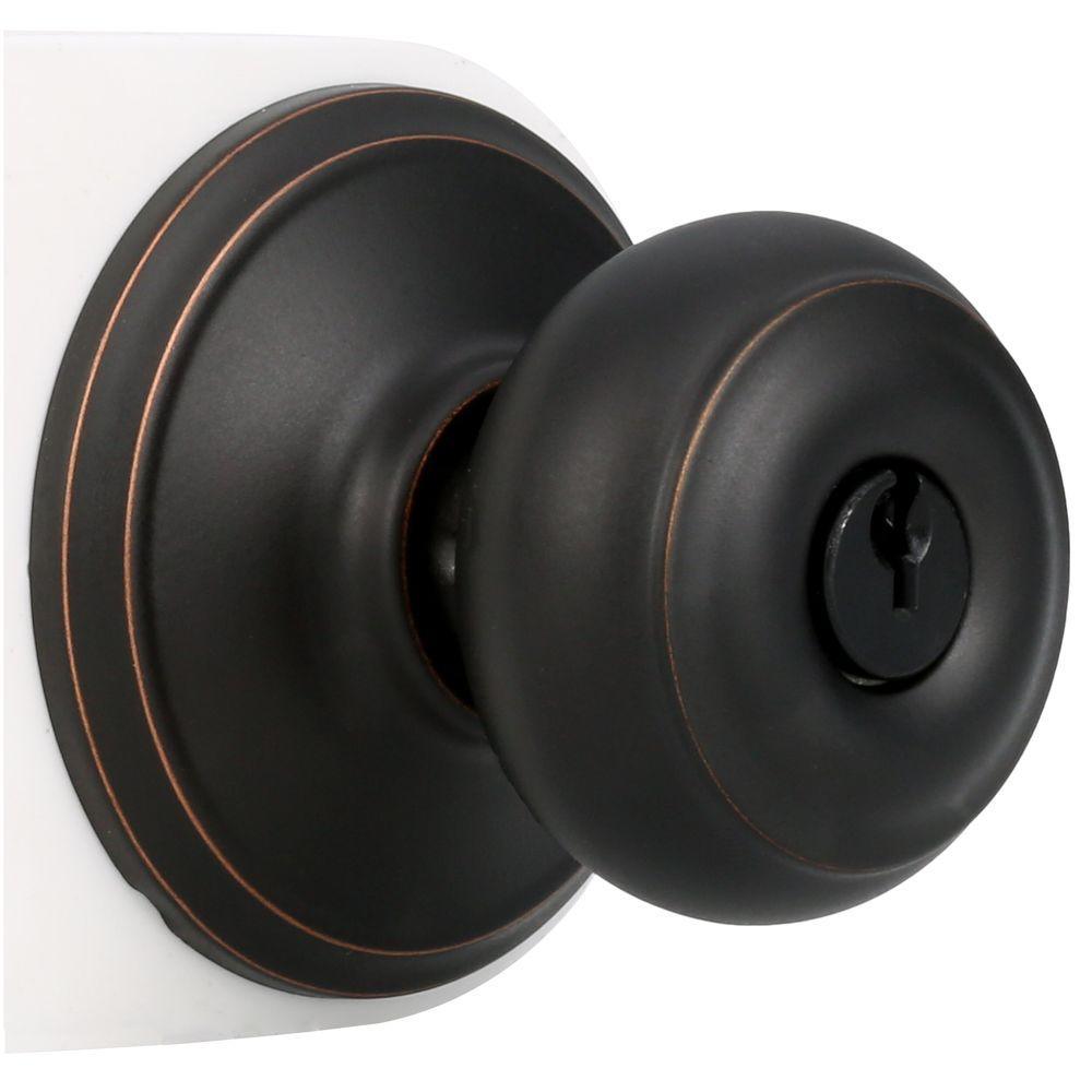 The Schlage Georgian Aged Bronze Keyed Entry Door Knob is perfect of use on exterior doors. The Georgian knob features a design inspired by Georgian-style homes in New England. Our Aged Bronze finish features warm, copper tones that break through its darker, aged exterior. The knob unlocks when the door is opened from the inside, allowing you to leave quickly and conveniently and re-enter easily. Plus, it was designed and tested with strength and durability in mind.