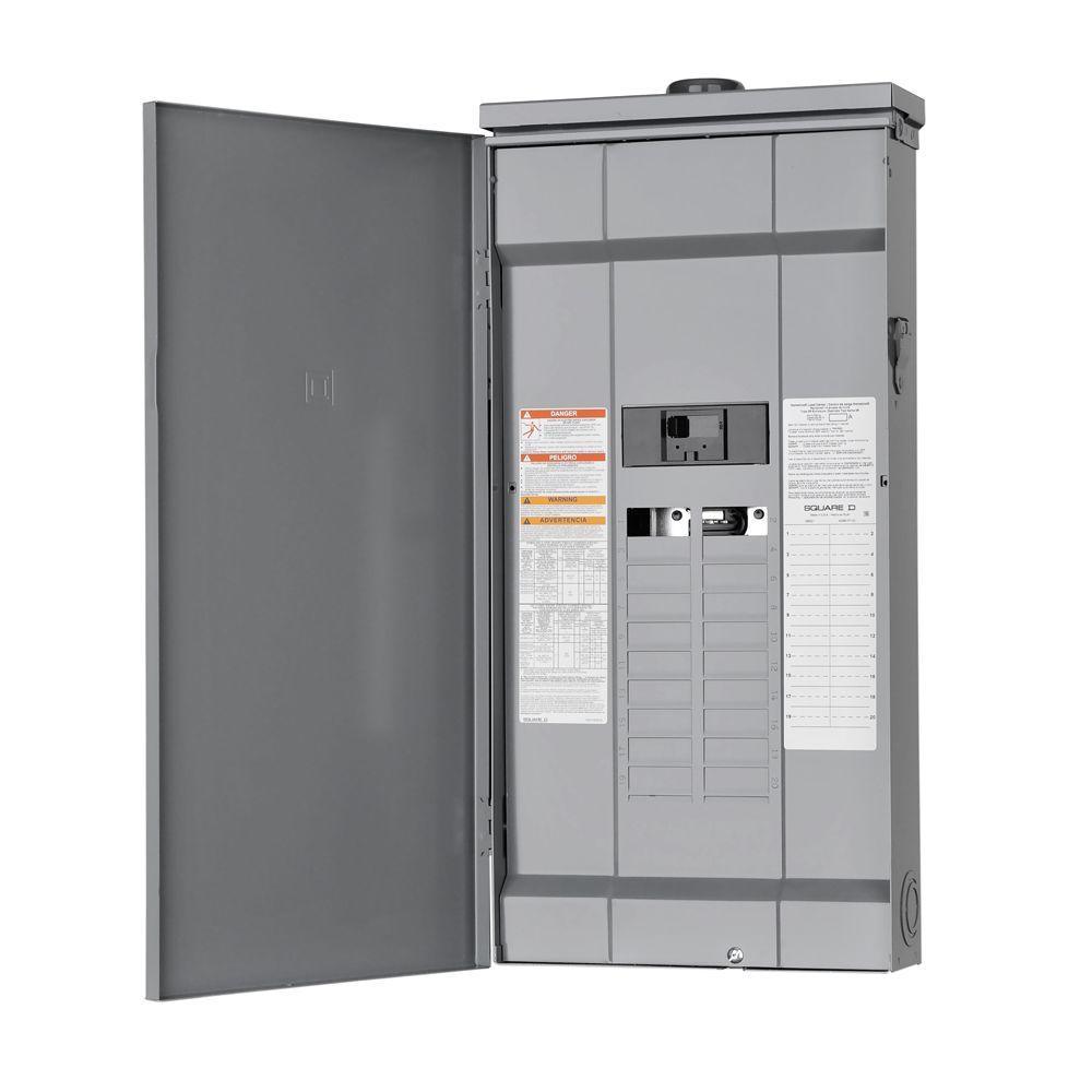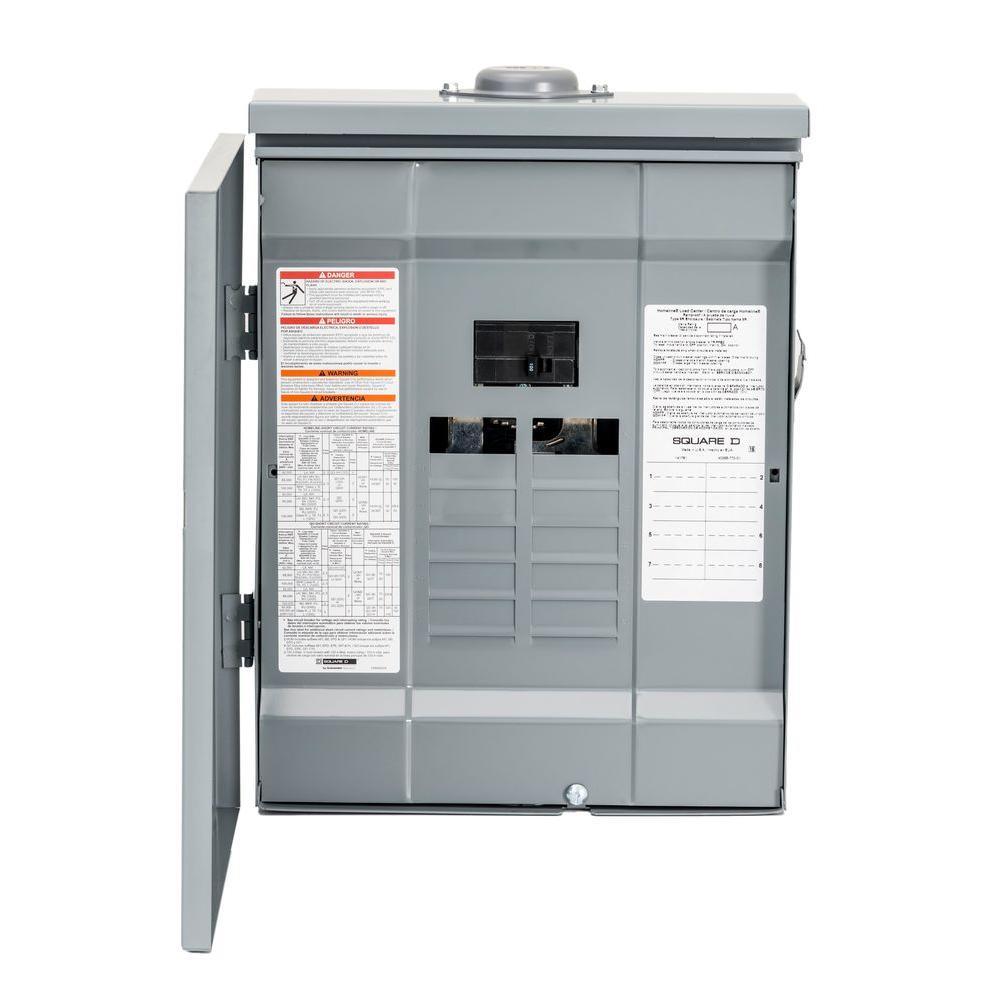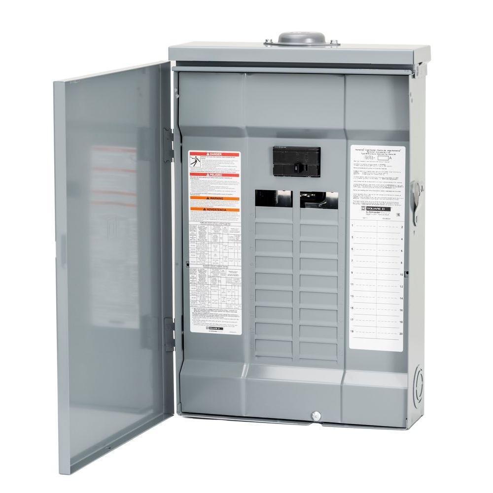 The Homeline 100 Amp 20-Space 40-Circuit Outdoor Convertible Main Breaker Load Center for Plug-on Neutral breakers by Square D is UL listed for residential and commercial power distribution. It features a plated, aluminum bus bar that is tested and listed specifically for Homeline circuit breakers. Designed for contractors, remodelers, builders, and homeowners who value affordability, this load center allows for fast installation and wire savings. Make sure to consult with your local building inspector for adoption and details. Equipped with a fully distributed neutral bar, this load center can accommodate Homeline plug-on neutral combination arc fault breakers in any space. Each pole space has the ability to accept full-size, tandem, or quad breakers, while the ground and neutral bars can take up to (3) #10-14 equipment grounds. The included rainproof outdoor cover has a stainless steel hasp for easy locking and is compatible with a plug-on secondary surge arrestor (sold separately).