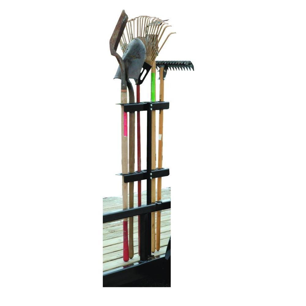 Haul and organize long-handle tools with this Buyers Products 6-position hand tool rack. Ideal for enclosed-style trailers, this rack can accommodate up to six tools. It is made from all-steel construction, so it's able to handle heavy-duty use. The multi-point mounting secures to the trailer floor and also the trailer top rail.