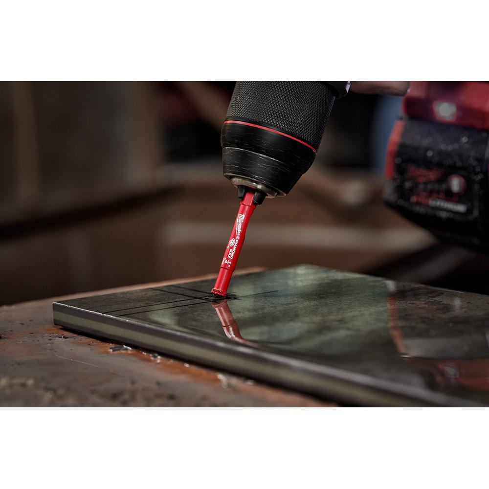The MILWAUKEE 3/16" Diamond MAX Hole Saw delivers users up to 10X longer life when cutting tile, stone, and glass. Diamond MAX Hole Saws offer best-in-class performance, with higher grade diamonds for maximum heat and fracture resistance. An improved continuous brazed edge provides clean, superior joint strength, and better diamond retention when cutting hard, abrasive materials. The One-Piece Hole Saw has a 1/4" quick-change hex shank and features a large slug ejection slot. Designed as the single cutting solution for all tile, stone, and glass applications, Diamond MAX offers users the ARB265Wt cost-per-hole on the market.