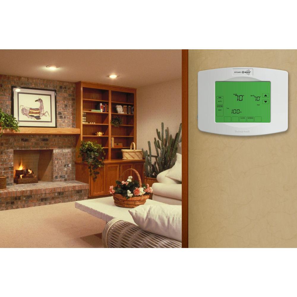 The Honeywell RTH8580ZW Z-Wave Thermostat offers convenient control at your fingertips. With a compatible Z-wave hub (sold separately), you can effortlessly monitor and adjust your home's temperature from anywhere. Trust in Honeywell's reliable and secure network to provide maximum comfort, as chosen by homeowners and contractors. This programmable thermostat integrates with other Z-wave enabled home automation devices, making it compatible with a wide range of heating and cooling systems (C-wire required). It also features automatic adjustments to pre-set temperatures, precise temperature control with +/-1°F accuracy, and a large backlit touchscreen display for easy viewing. Additionally, it offers helpful reminders for filter and battery changes, accurate timekeeping during power outages, and automatic updates for daylight savings time. Compatible with the Wink App when used with a Wink Hub.