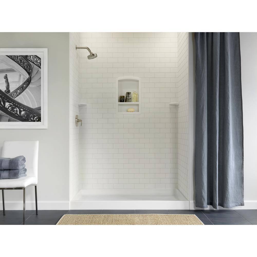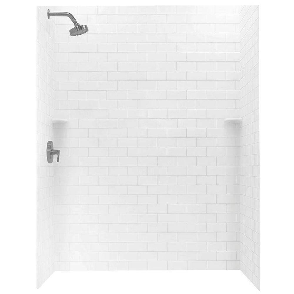 Regular price $1,868.37Enhance your bathroom with the timeless elegance of the 36 in. x 62 in. x 72 in. 3-piece Solid Surface Subway Tile Easy Up Adhesive Alcove Shower Surround in White. Made of authentic solid surface, this wall kit can withstand high temperatures and is perfect for steam showers. Its classic 3 in. x 6 in. subway tile pattern and durable grout-free design make for easy maintenance and cleaning. Plus, with its easy glue-up installation, this wall kit is an ideal solution for both remodeling and new construction, fitting rectangular or neo angle shower floors measuring 36 in. x 62 in. or smaller. Included are 2 side panels, 1 back panel, and 2 corner soap dishes for a complete look. Upgrade your bathroom with the professional and informative guidance of an industry expert.