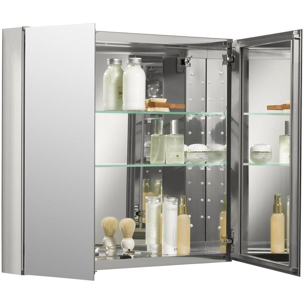 With a sleek mirrored surface inside and outside, this 30 in. frameless medicine cabinet is a versatile option. The two mirrors on the front doors appear as one larger mirror for a design that integrates easily into any bath or powder room. Interior glass shelves are adjustable to accommodate your toiletries.
