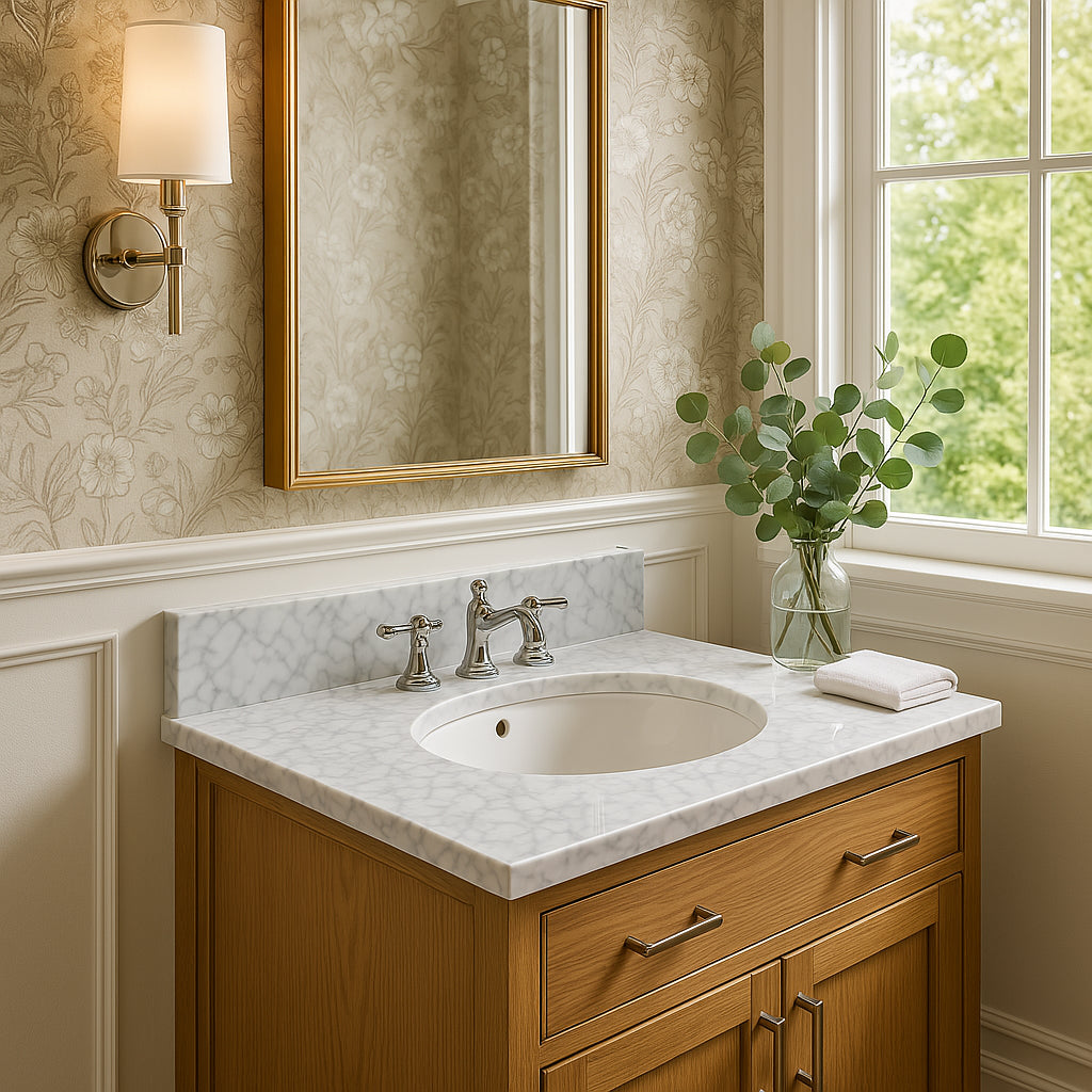 Upgrade your bathroom today with this elegant and durable vanity top—perfect for a sophisticated touch.