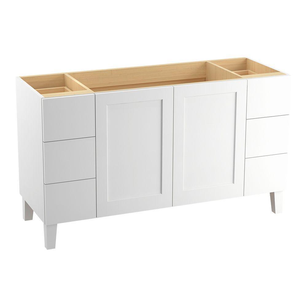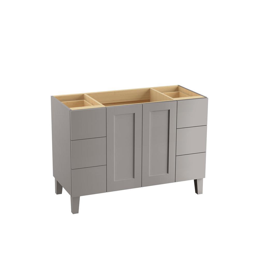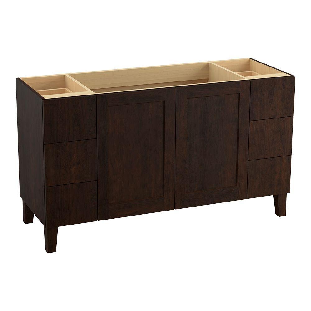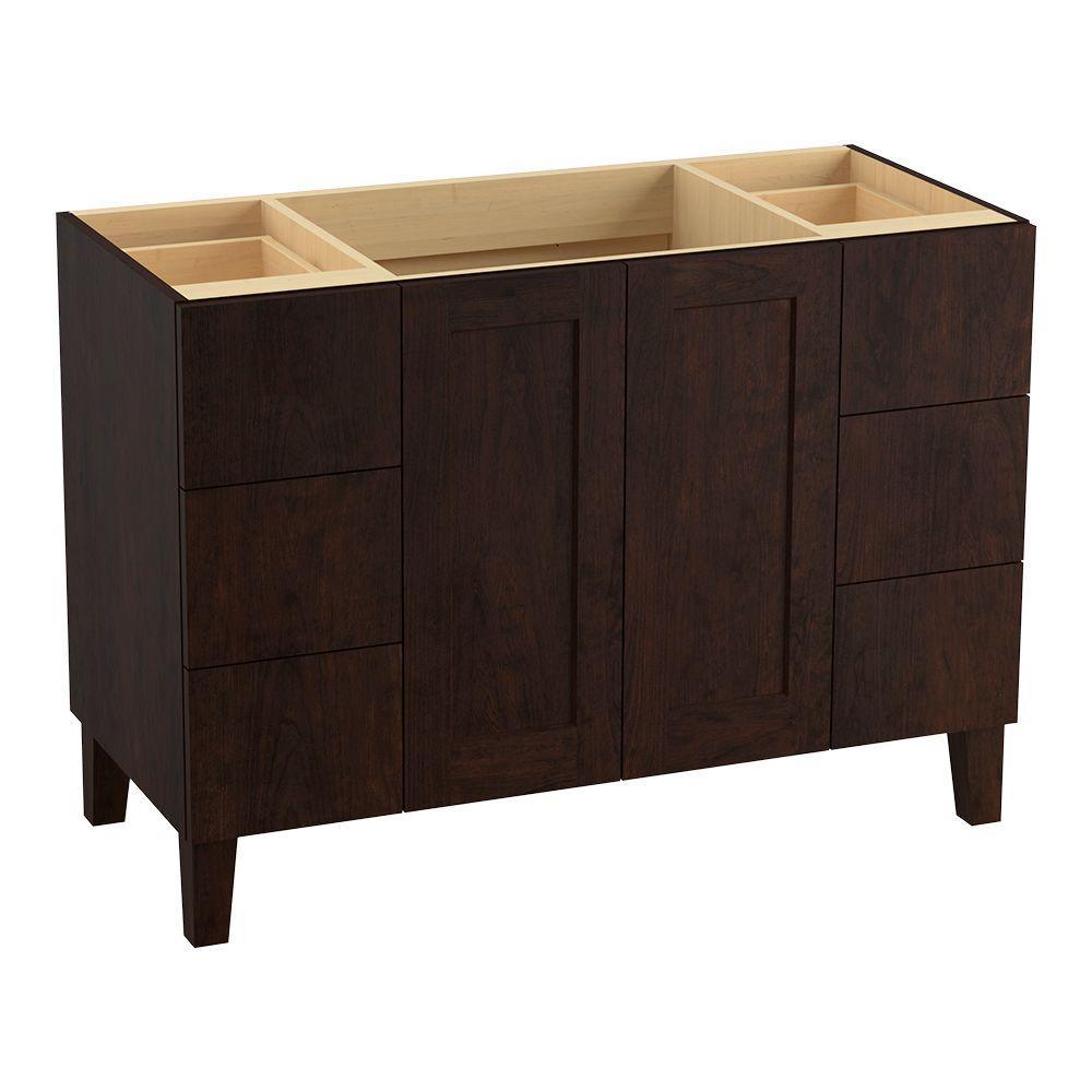 Breathtaking design meets unrivaled craftsmanship in the KOHLER Tailored vanity collection. No detail was overlooked in the meticulous crafting of this collection, from the premium hardwoods to the specially designed hardware and vanity tops, all available in an array of finishes to create your own look. This Poplin vanity draws its inspiration from Craftsman and Shaker furniture designs and features a prominent wood grain for a robust, rustic feel. Complete your vanity with a coordinating top, hardware and accessories from the collection.