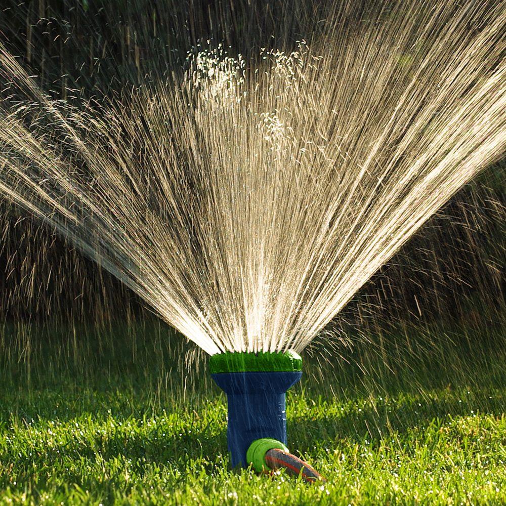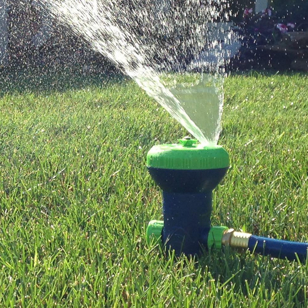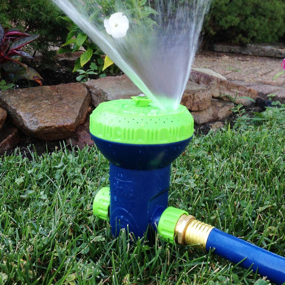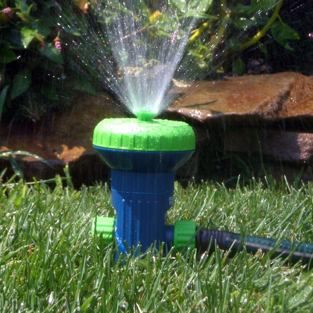 This Ray Padula Choose It. Stationary sprinkler is an exciting, popular choice for many gardeners when watering small areas, gardens, or odd shaped yards. The rotating turret top features nine selectable watering patterns, providing a pattern perfect for every shape yard. The spinning water vane center combines two sprinklers into one. Whether you’re watering the vegetables, a newly seeded lawn, or a thin curb strip of grass, Choose It. Is a great choice. Best of all the in-series spike base allows multiple sprinklers to be connected at once. Simply remove the green end cap, attach another hose, and lead to the next sprinkler. With one turn of the faucet all sprinklers work together to water the whole yard without moving the hose.