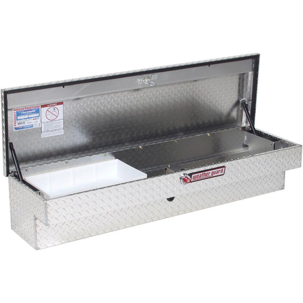 Lo-Side Boxes mount over the bedrails of your truck and keep critical tools and parts at your fingertips. The Model 174-0-01 aluminum Lo-Side Box features a diamond plate pattern with ARMOR-TUFF Clear Coat finish and has a storage capacity of 4.1 cu ft. Easy installation utilizes mounting brackets that do not require drilling into the rails.