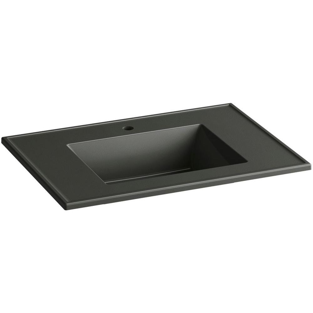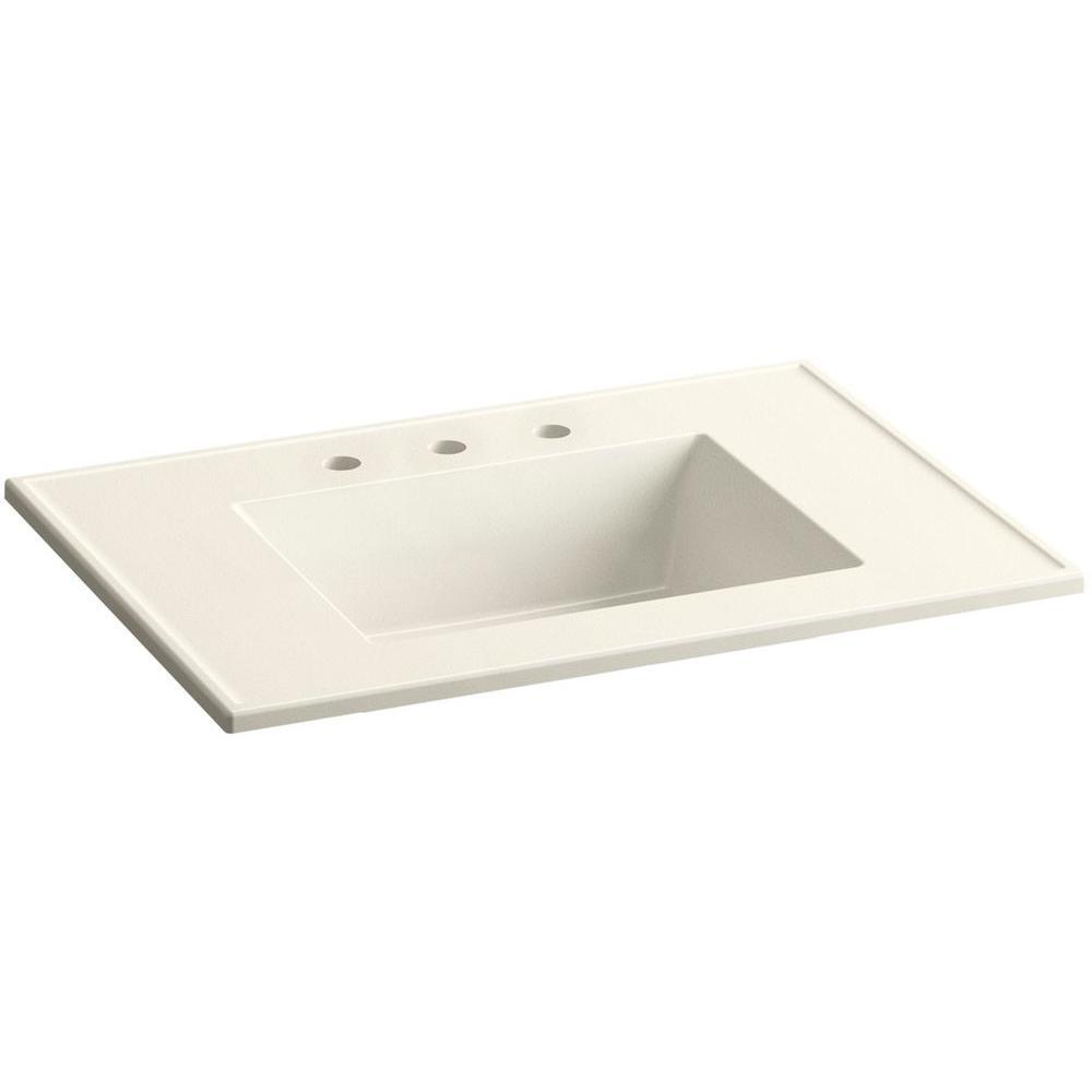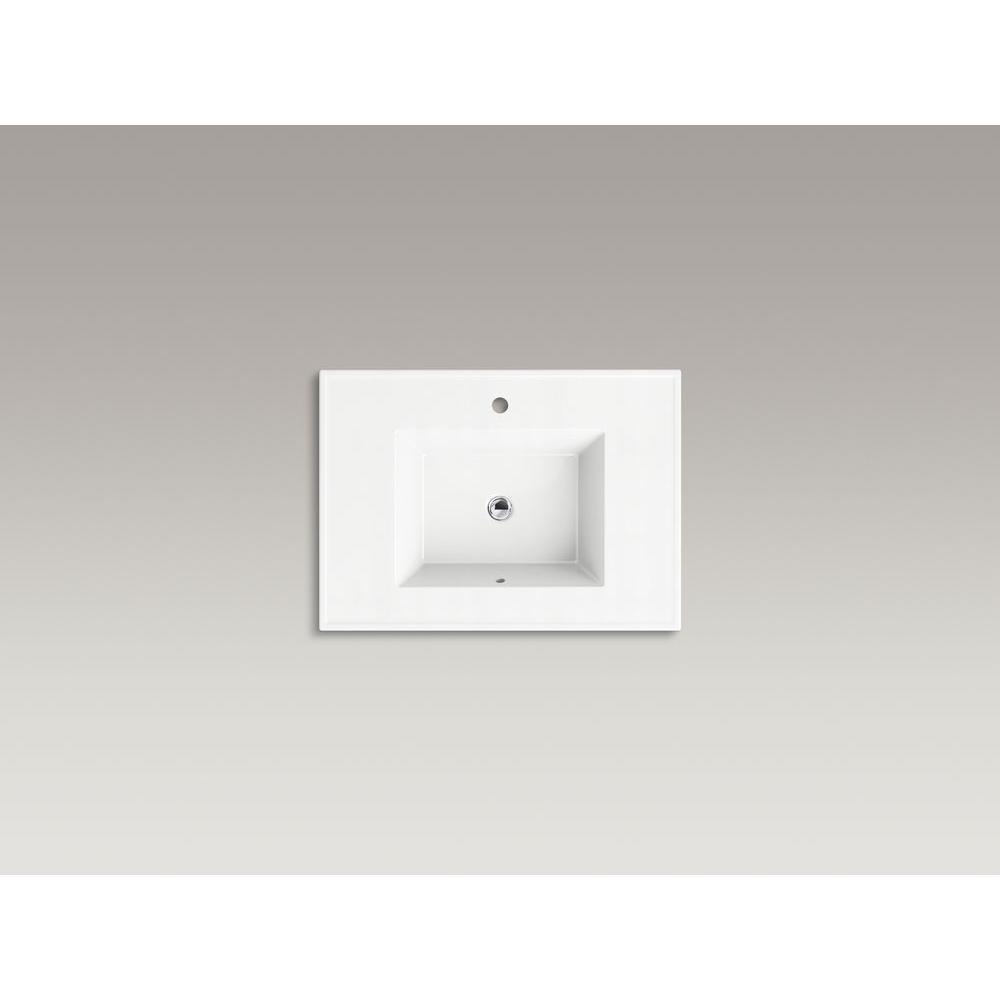 This integrated vanity top and sink offers a beautifully coordinated and easy design solution to reflect your unique bathroom style. With one-piece, seamless construction to simplify cleaning, Ceramic/Impressions vanity-top sinks are available in an array of dimensional color finishes that evoke a rich, spa-like feeling. This top/sink pairs perfectly with the industry-standard vanity sizes of the KOHLER Tailored vanity collection, and the new dimensional finishes are color matched to existing KOHLER vitreous colors.