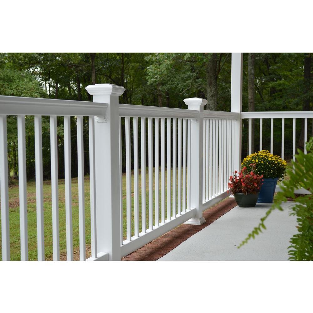 Fiberon ArmorGuard Composite Railing offers a flat, entertainment friendly profile perfect for dressing up decks, porches, balconies and stairs. Available with white square composite balusters, Veranda Composite Railing pairs well with any architectural style. Fiberon Composite Railing consists of a premium composite substructure with a permanent PVC finish for a beautiful, sturdy and safe surround. Fiberon Composite Railing installs quickly and easily with drop-in balusters. Matching Post Sleeves, Post Caps and Post Sleeve Base Molding available to complete your railing system. Order your 6 in. sample today and fall in love with Fiberon Enclave Railing. California residents: See Proposition 65 information.