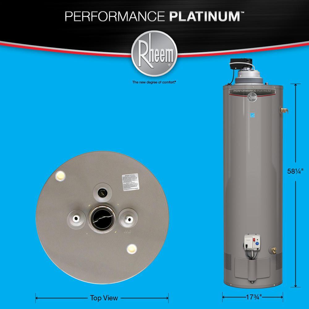 The Rheem Performance Platinum XR90 is a 29 Gal. 60,000 BTU Natural Gas Water Heater featuring an electronic self-diagnostic gas control system that monitors system performance and operation, designed for residential applications. This water heater delivers 93 Gallons of hot water within the first hour, providing more hot water than most 50 gallon models. Provides ample amount o hot water for households with 3 to 5 people. The small foot print of this water heater is ideal for installations in tight spaces.
