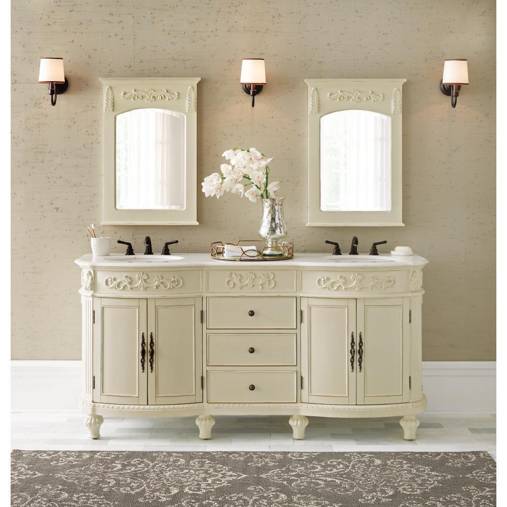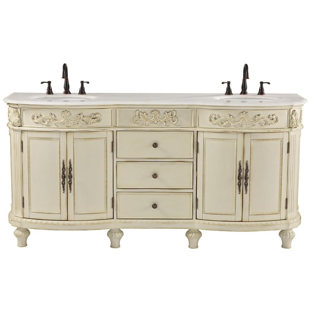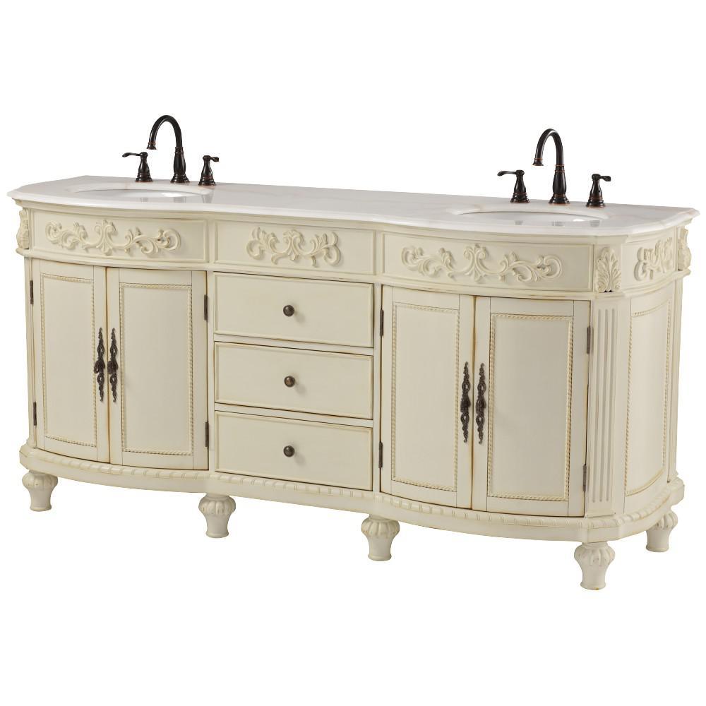 Chelsea 72 in. W Double Bath Vanity in Antique White with Marble Vanity Top in White