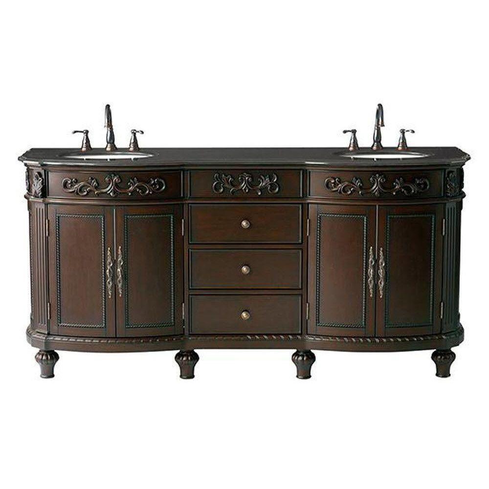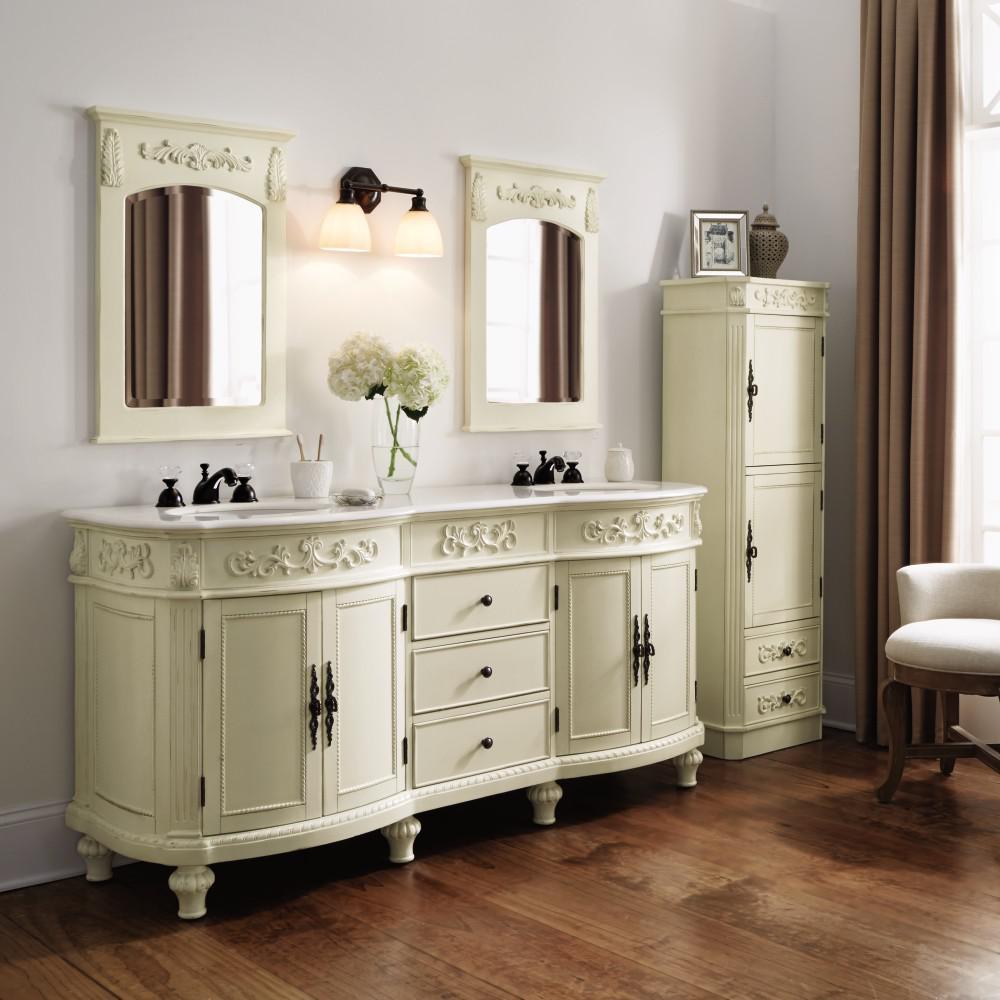 Get the look of antique furniture with the Chelsea double-sink bathroom vanity. It's equipped with plenty of drawer and cabinet space for all of you and your family's bath necessities. With beautiful and intricate details, such as antique brass hardware, the Chelsea adds a touch of elegance to any bathroom.