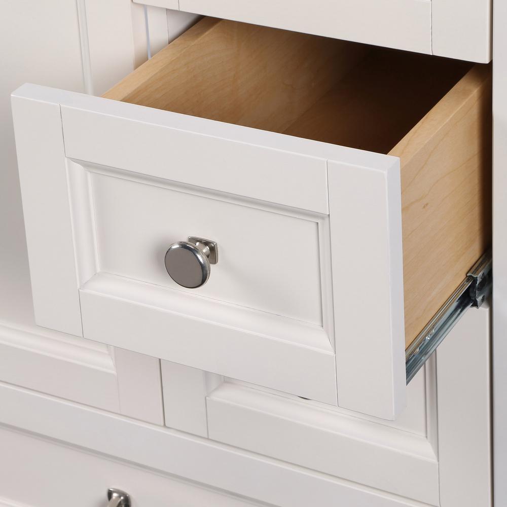 Beautifully crafted, the furniture style Claxby Collection will bring elegance and style to any bathroom. Featuring six working drawers and two large bottom drawers that provide ample storage for all of your bath essentials. Finished in a beautiful cream color and accented with chrome cabinet hardware, the 36 in. Claxby​ vanity is a perfect fit for any bath.