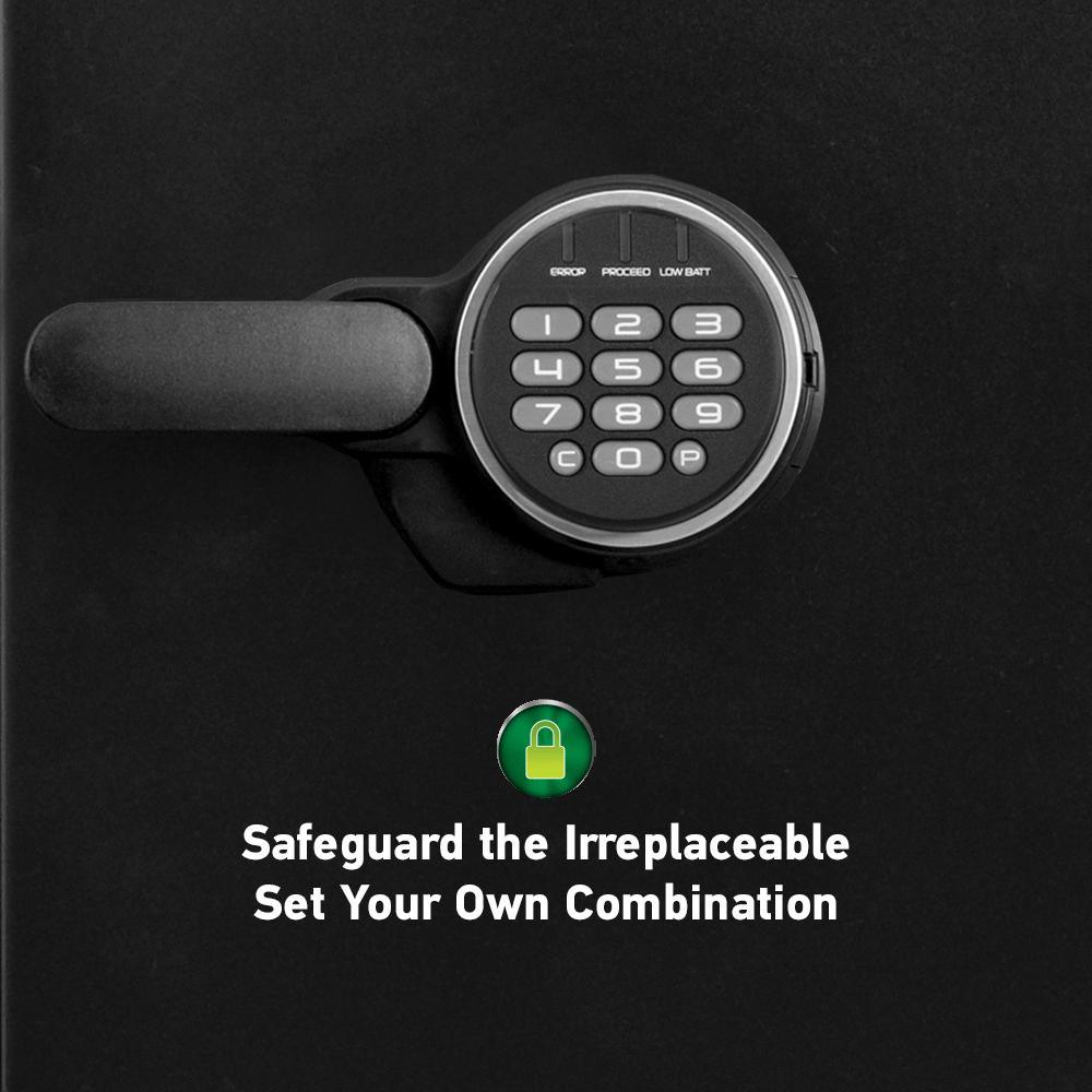 • Set your own digital combination fire safe for strong security; digital combination safe features six live-locking bolts, steel construction, pry-resistant hinge bar, two trays, and bolt down hardware