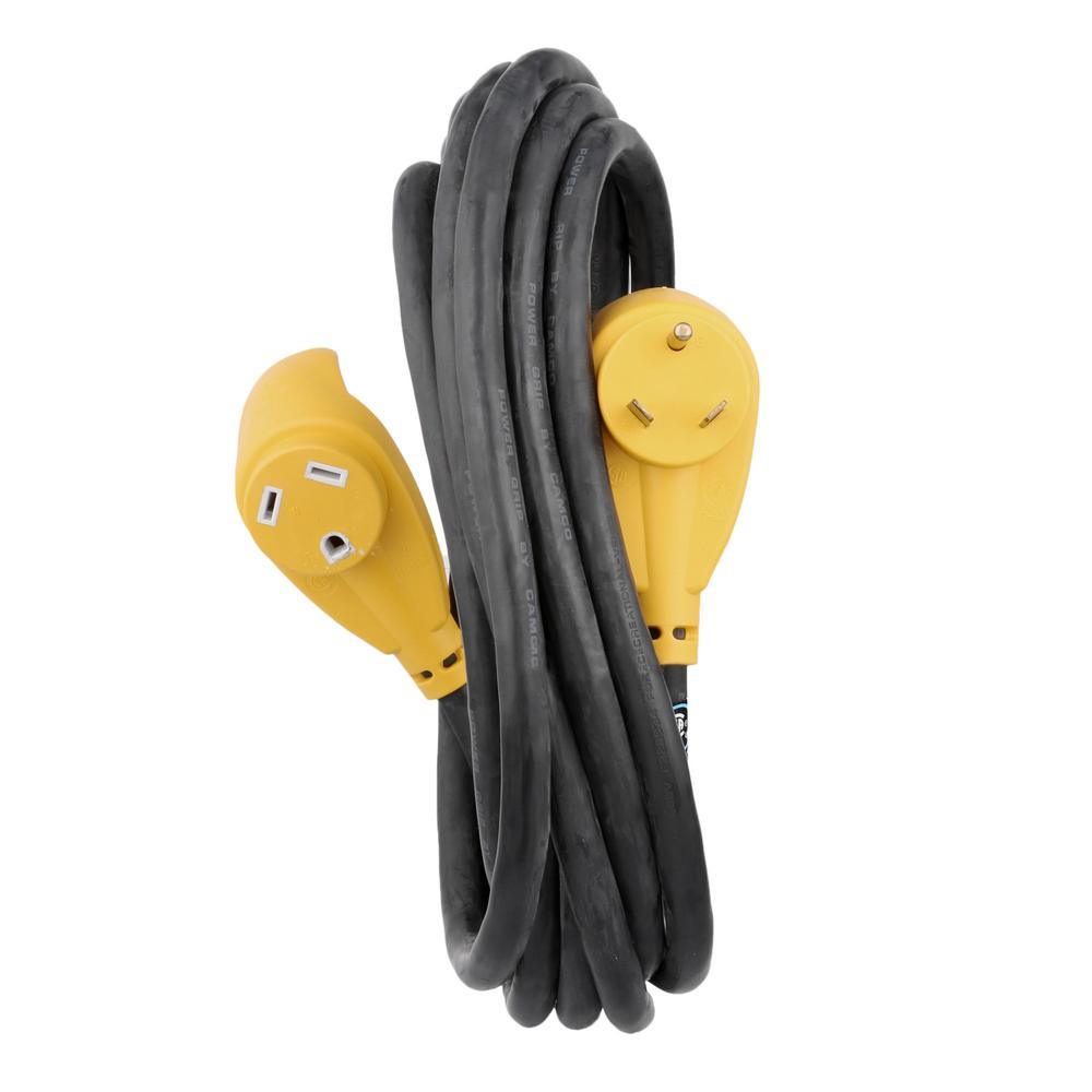 Camco RV 25 ft. 30-Amp Power Grip Electrical Power cord with Handle is designed for greater convenience and ease of use. It is 10 gauge grounded STW with pull handles on both ends.
