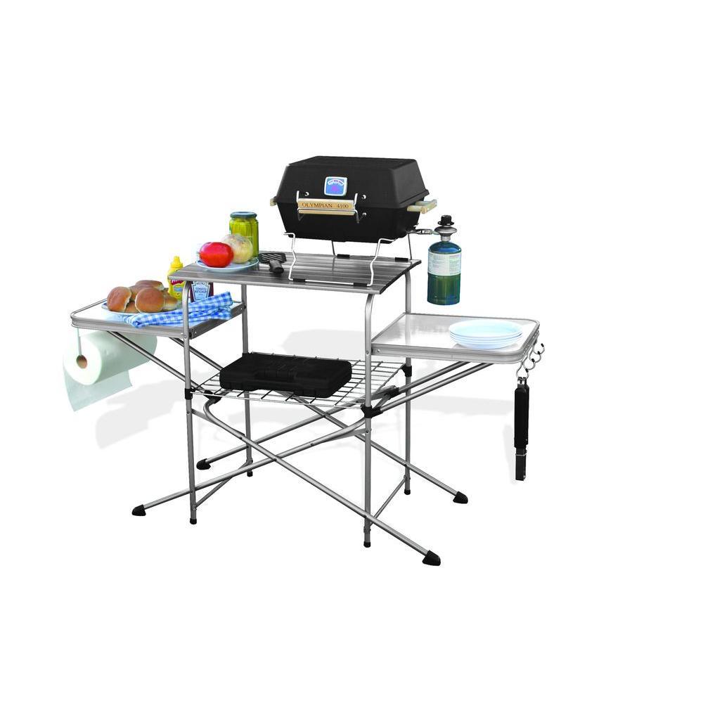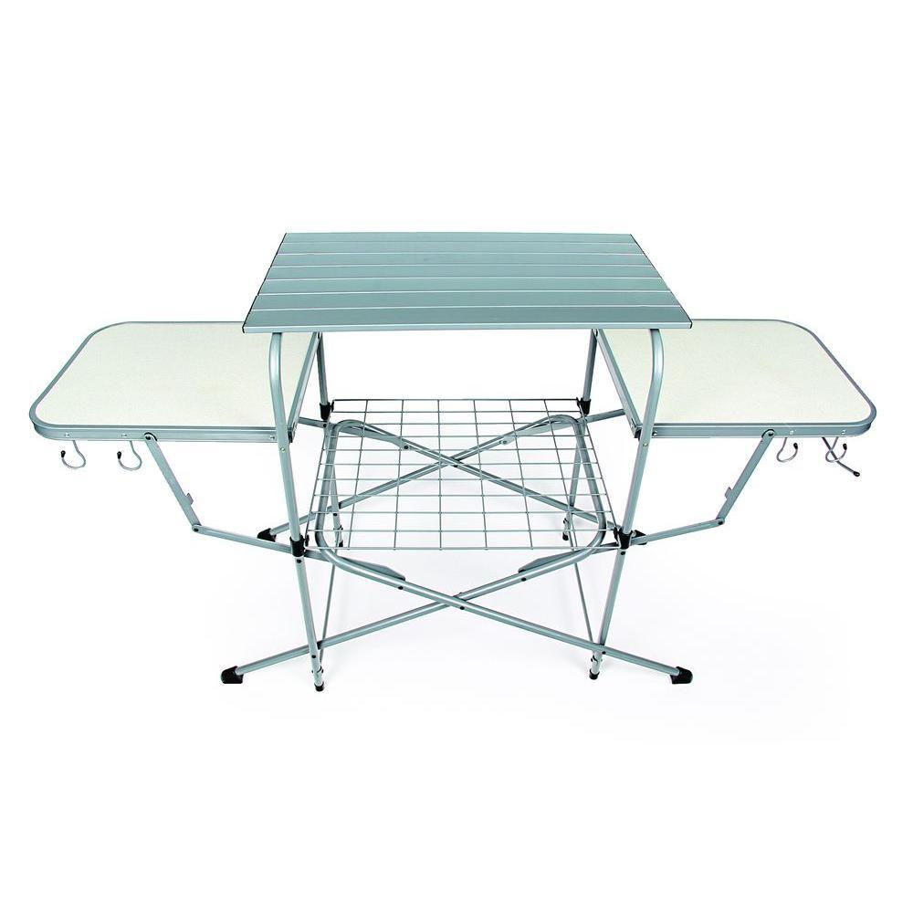 The Deluxe Folding Grilling Table is a must-have accessory for any tailgating party or camping trip. This spacious grilling table has a lightweight, high strength steel frame and an aluminum table top. The table is quick and easy to set-up.