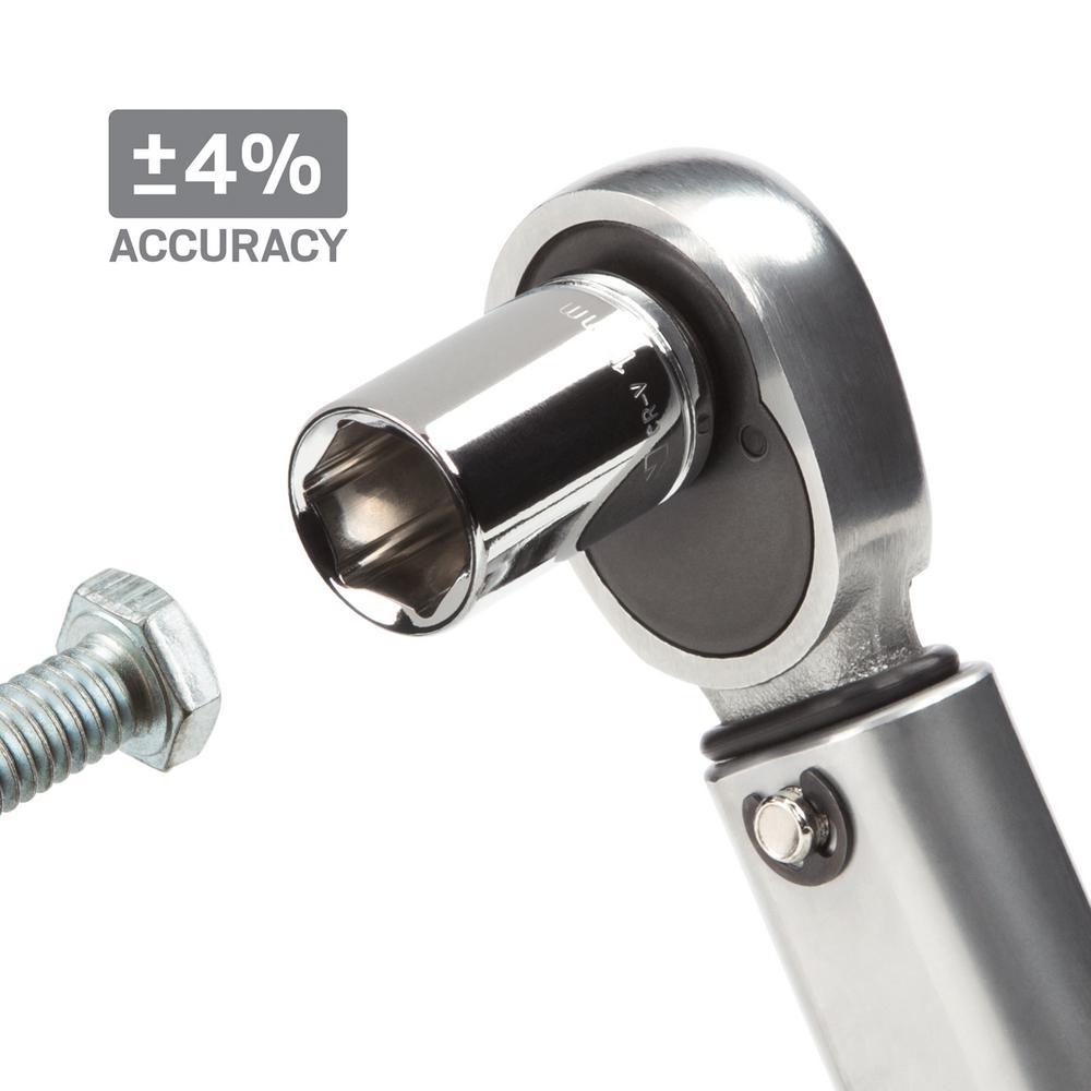 • Reversible ratchet head drives in both directions and measures torque in clockwise direction