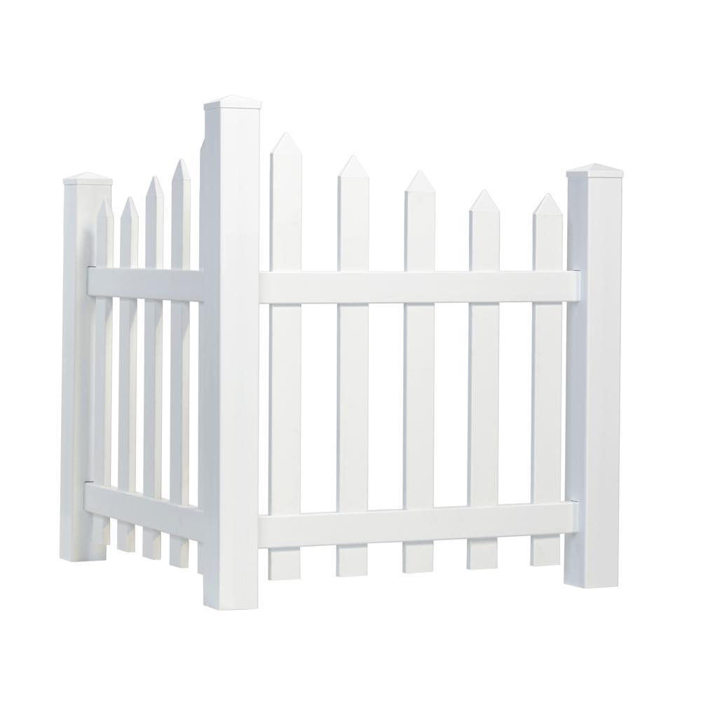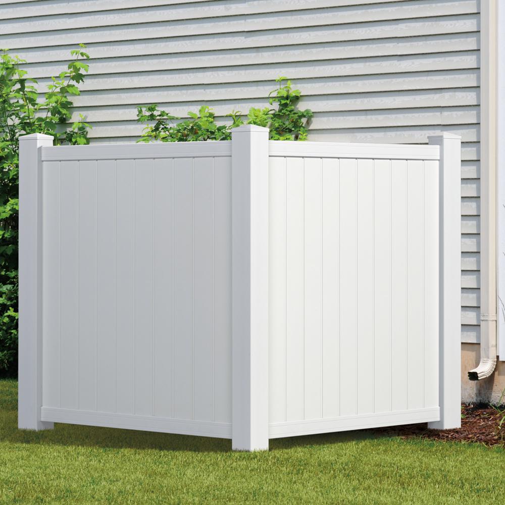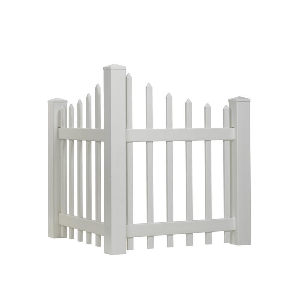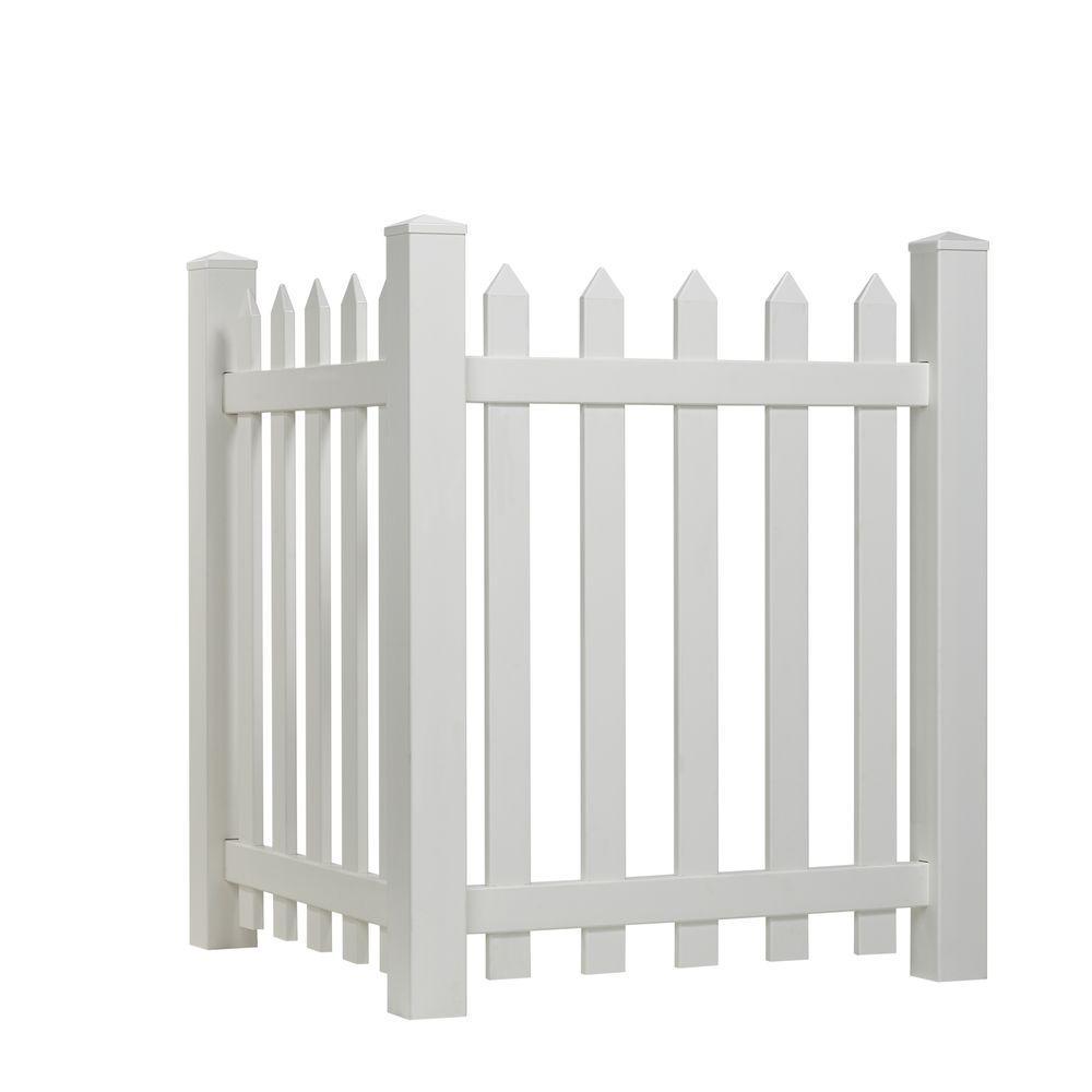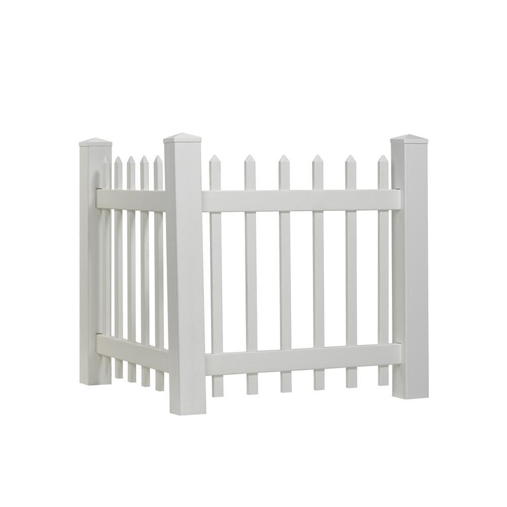 Accent the positive. Eliminate the negative. Vinyl accent fencing not only adds decorative accents and borders to your outdoor space, it helps hide less attractive outdoor fixtures, such as utility boxes and HVAC compressors. The privacy design adds charm to a garden area and the spade-shaped pickets are 1.5 in. wide. The fence forms a stable L shape; use the included wood stakes for extra stability, if needed.