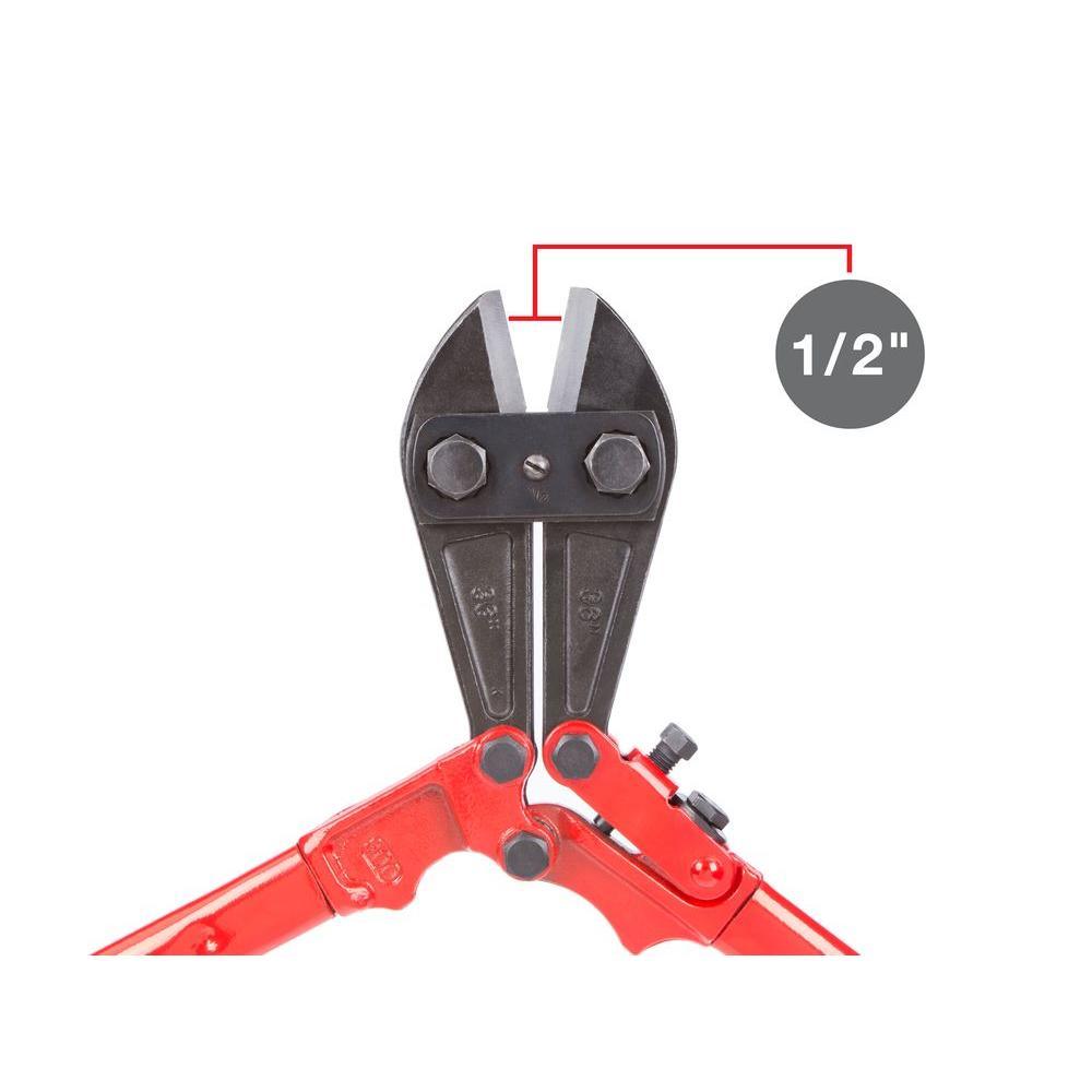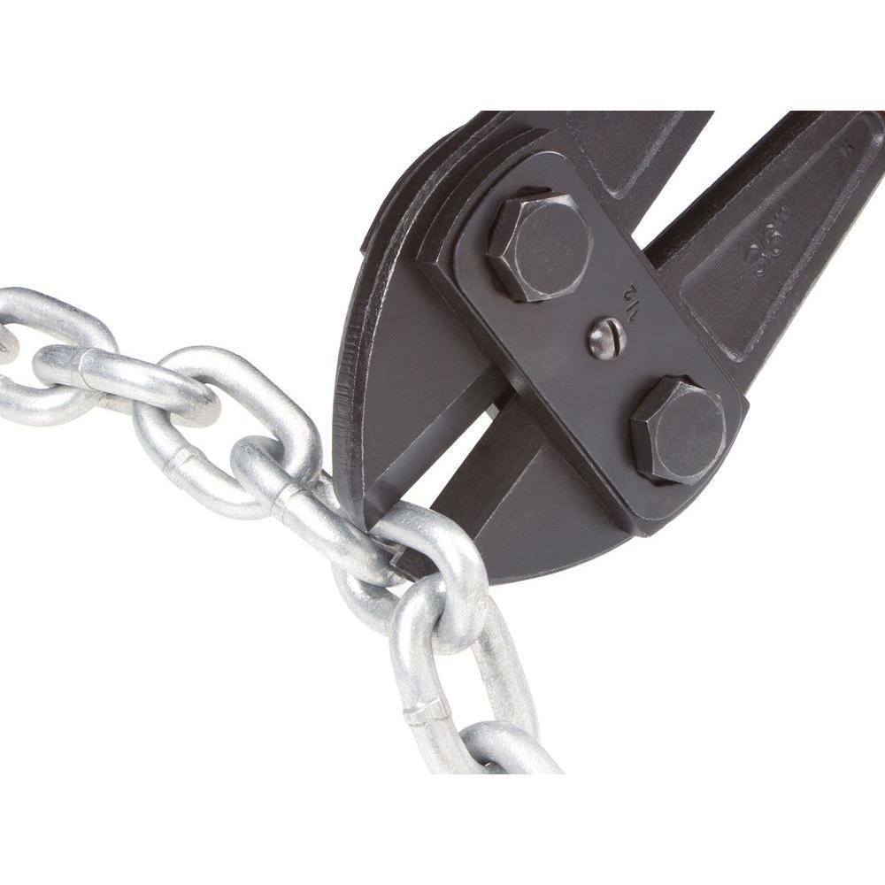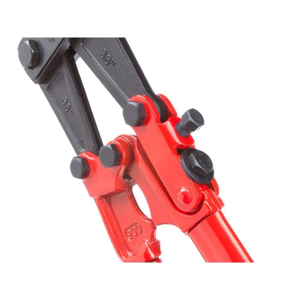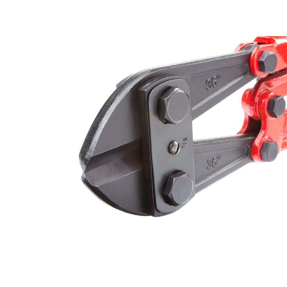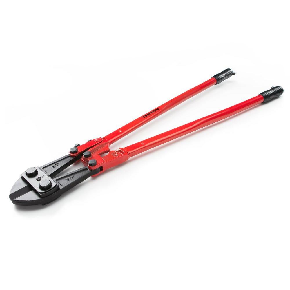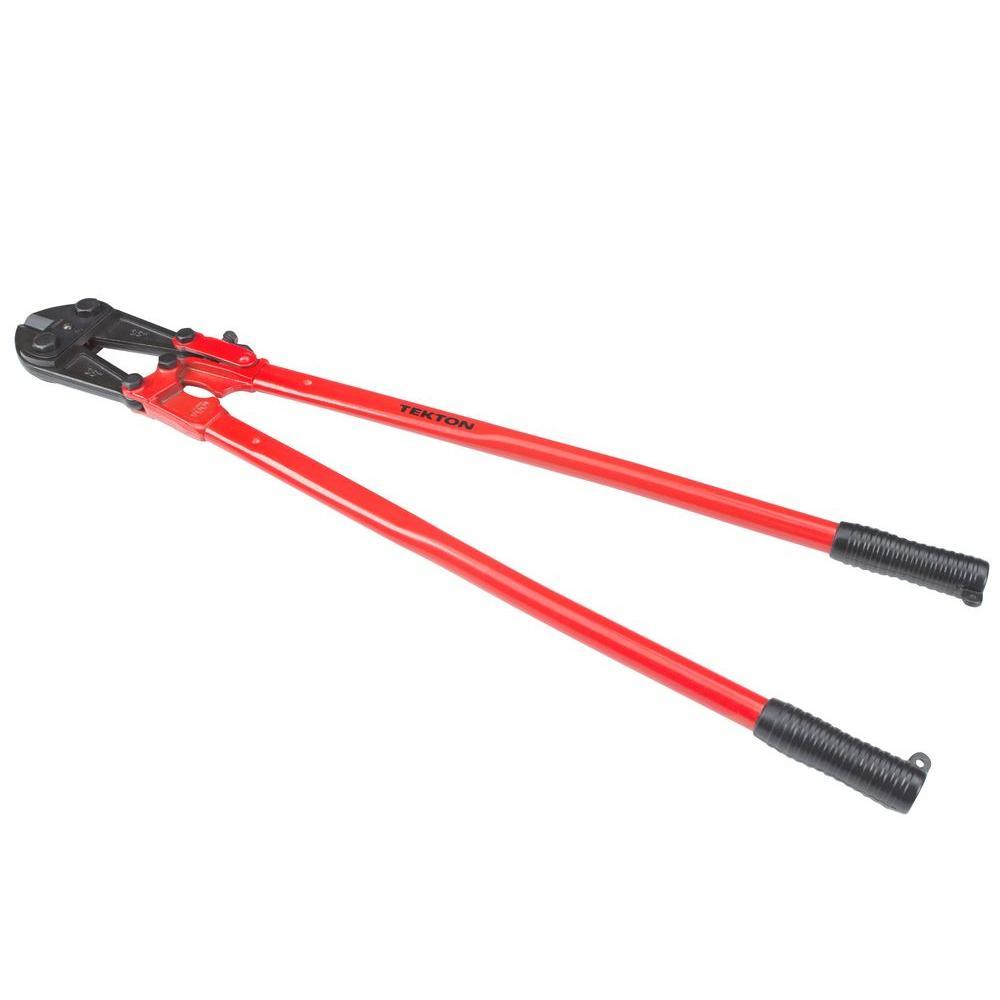 Cut bolts, chains, threaded rods, and more using the TEKTON 36 in. Bolt Cutter. Forged and hardened alloy steel jaws driven by a compound hinge deliver superior cutting power with less effort. Strong, high-leverage tubular steel handles will not twist or give under load, so you can confidently tackle even the toughest tasks. The soft rubber grips offer non-slip comfort, and the jaws are both adjustable and replaceable for long-lasting versatility.