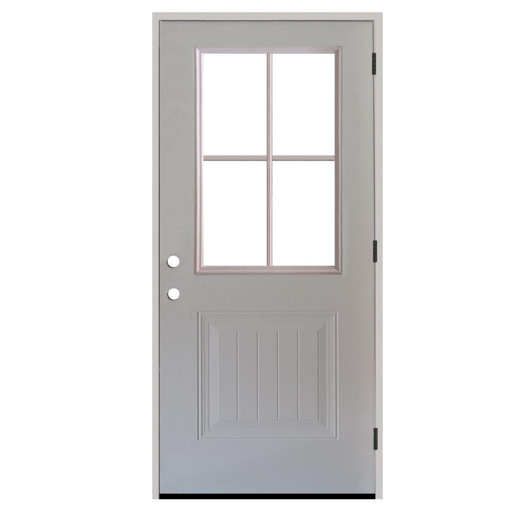 Brighten your entryway with this Steves & Sons 4 Lite Steel Entry Door. This ENERGY STAR qualified 1-3/4 in. door is pre-assembled in a fully weather-stripped frame for easy installation. The door is assembled with 3 bronze hinges. Door and frame are primed and ready to finish in a color of your choice.