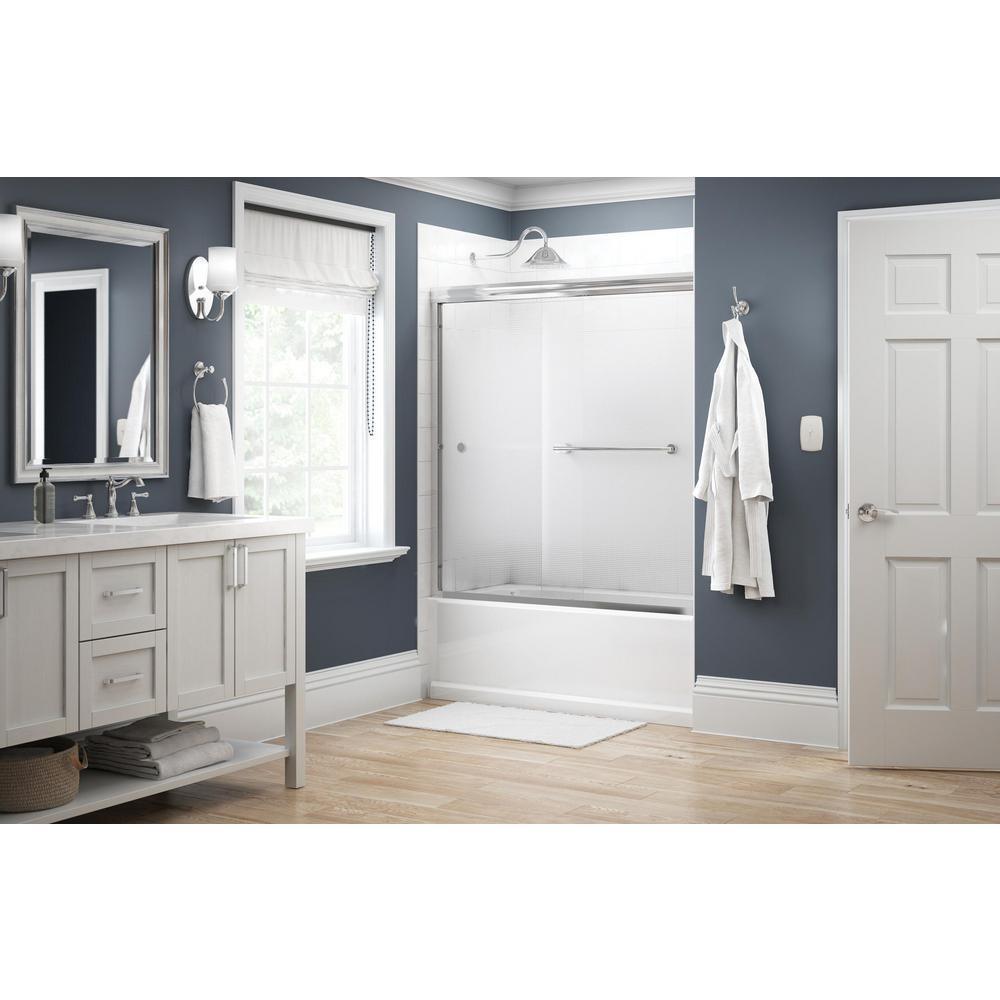 Whether you’re looking for a moderate DIY project or working on a bathroom remodel, upgrading your bathroom with a new sliding shower door is easy with the Delta 1-2-3 custom sliding shower door program. Delta’s custom glass shower door program offers 1000s of design combinations by choosing your glass shower panels, shower door track, and shower door handles to build a unique, personalized glass shower door. Simple and classic, the Traditional bathtub door track in chrome features a reversible top track with two unique profiles that offer uncompromised quality and value with a design that’s familiar and balanced. Make a statement with standard 1/4 in. ANSI certified tempered glass shower panels, featuring a pattern of clear and frosted cascading dots for a glass shower door with a unique and trendy modern look. The Lyndall sliding shower door handles in chrome feature two convenient towel bars for extra bathroom storage in a contemporary design silhouette that beautifully demonstrates simplistic, modern elegance.
