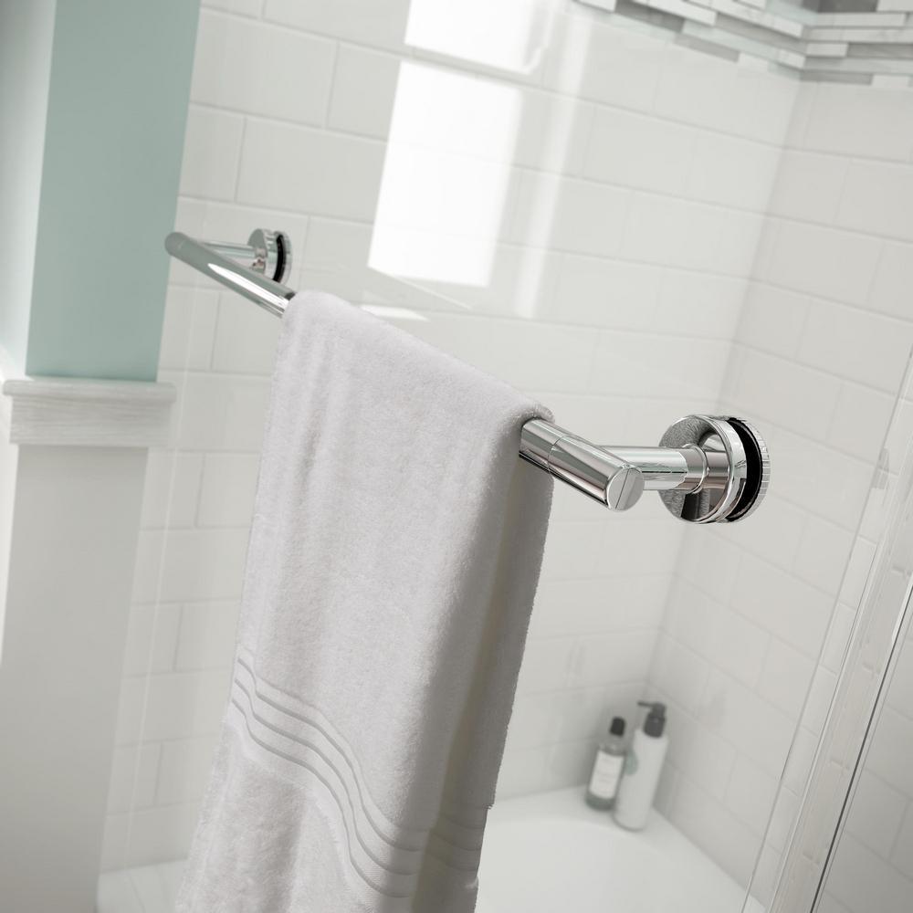 20 in. handles function as towel bars, providing handy storage space for a folded bath towel or two hand towels