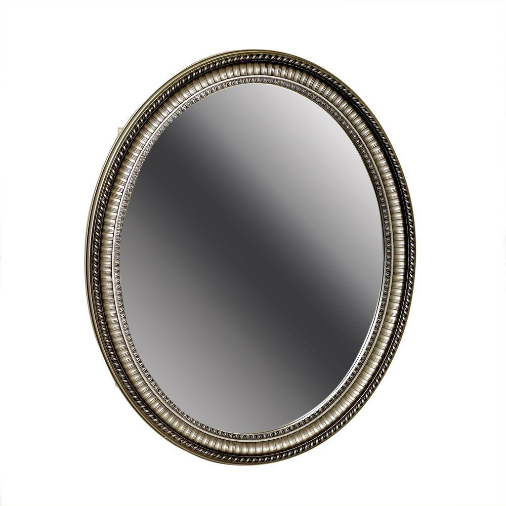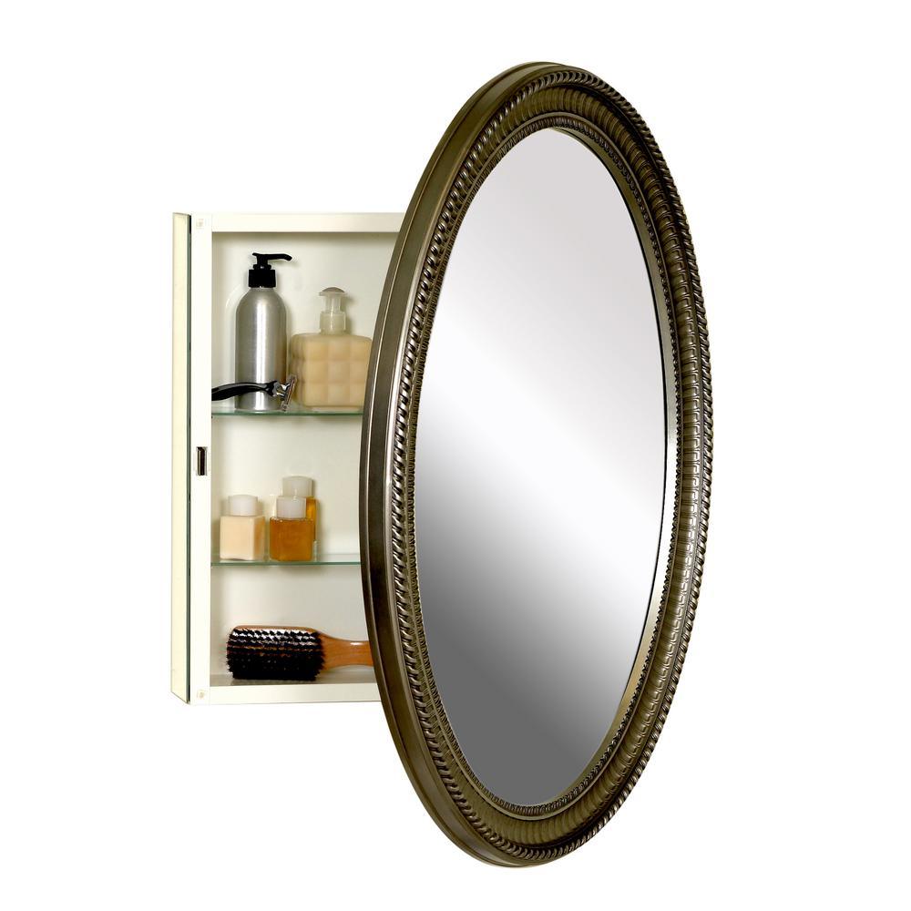 25 in. W x 32 in. H Zenith Oval Mirror Surface Mount Medicine Cabinet in Pewter