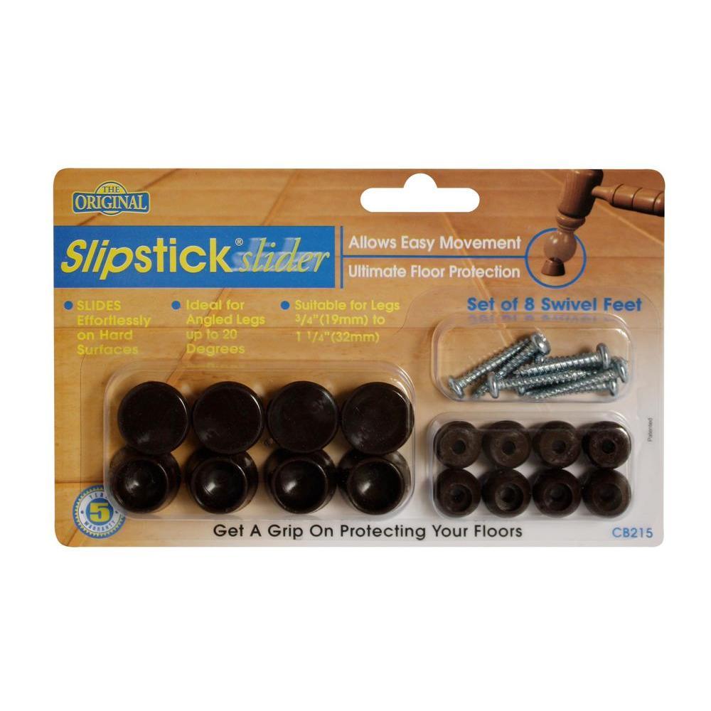 Uniquely crafted for chair legs that angle outward, the sliding surface on these floor protectors are the perfect choice to easily yet subtly safeguard floors from potential scrapes or gouges. The swivel base of the product allows for the slider to make perfect, full and flat contact with the floor, increasing stability. Simple 1 screw installation provides a longer-lasting, permanent hold that will keep your floors flawless.