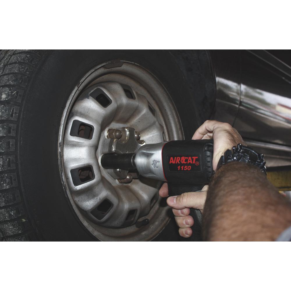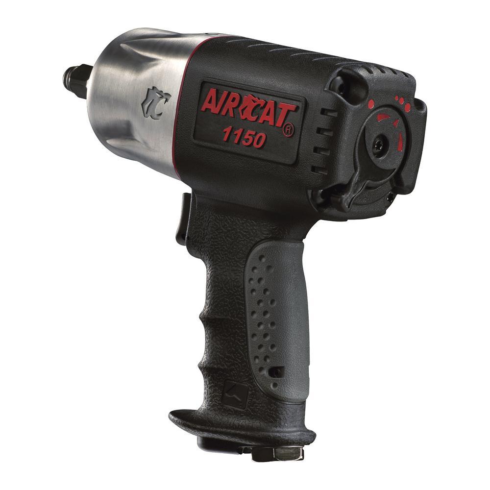 The AIRCAT 1150, 1/2 in. Composite Impact Wrench is designed for heavy duty automotive and industrial applications. It features the most significant advances in the performance of pneumatic power tools in nearly 30 years. The tool has substantially reduced noise levels while retaining more power and torque. It also incorporates a patented, ergonomically engineered handle design to relieve stress and fatigue on the operator’s hands, wrists and arms. The tools featured patented tuned exhaust muffler technology, allows discharged air to pass without developing back pressure, thus retaining more power, while significantly reducing noise. More power - half the noise. Our unparalleled commitment to product innovation, high service levels, continued product development and expansion truly make AIRCAT products the #1 Choice in air tools.