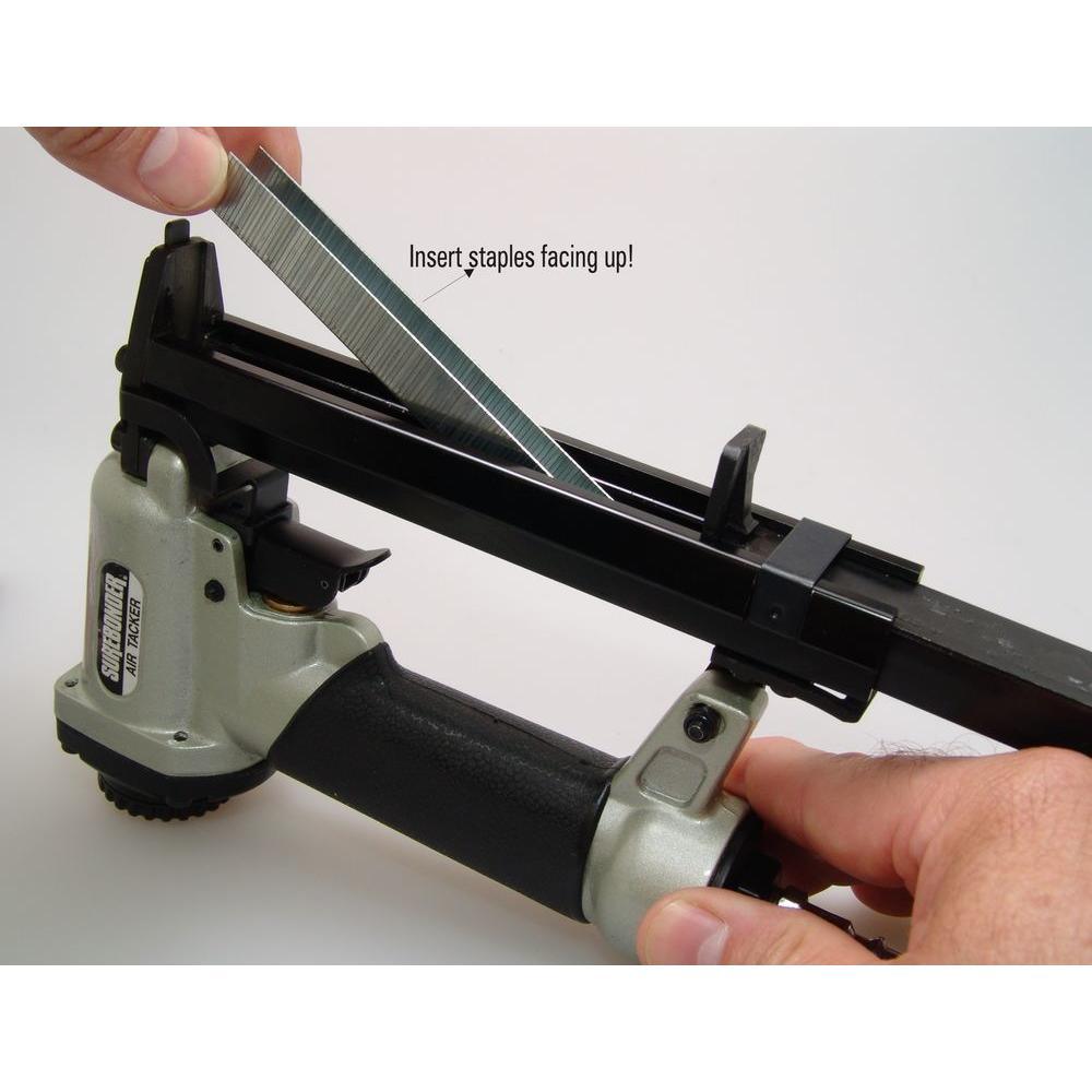 - Uses Surebonder #4 staples or arrow T50 type staples in the following lengths: 1/4 in., 5/16 in., 3/8 in., 1/2 in. and 9/16 in. Sure bonder part numbers respectively: 55014, 55516, 55038, 55012 and 55916