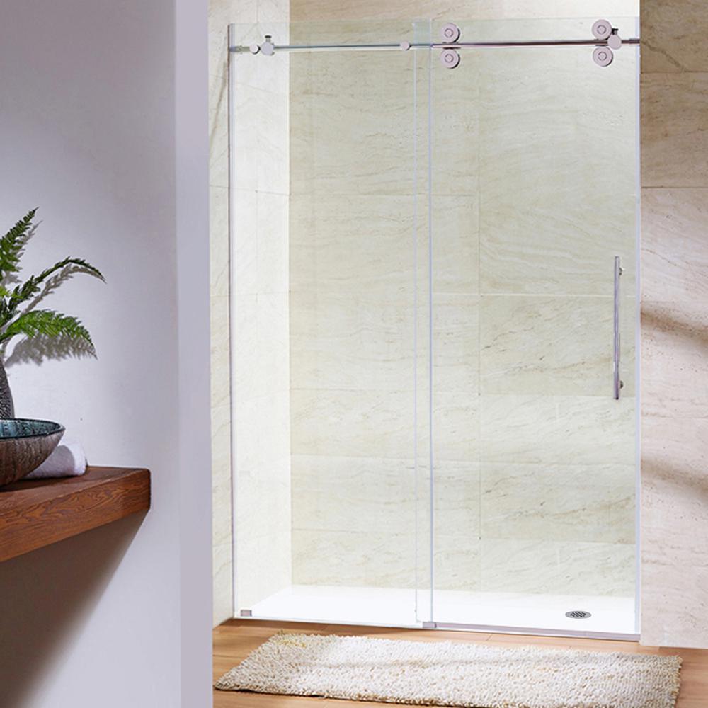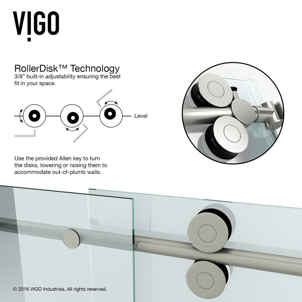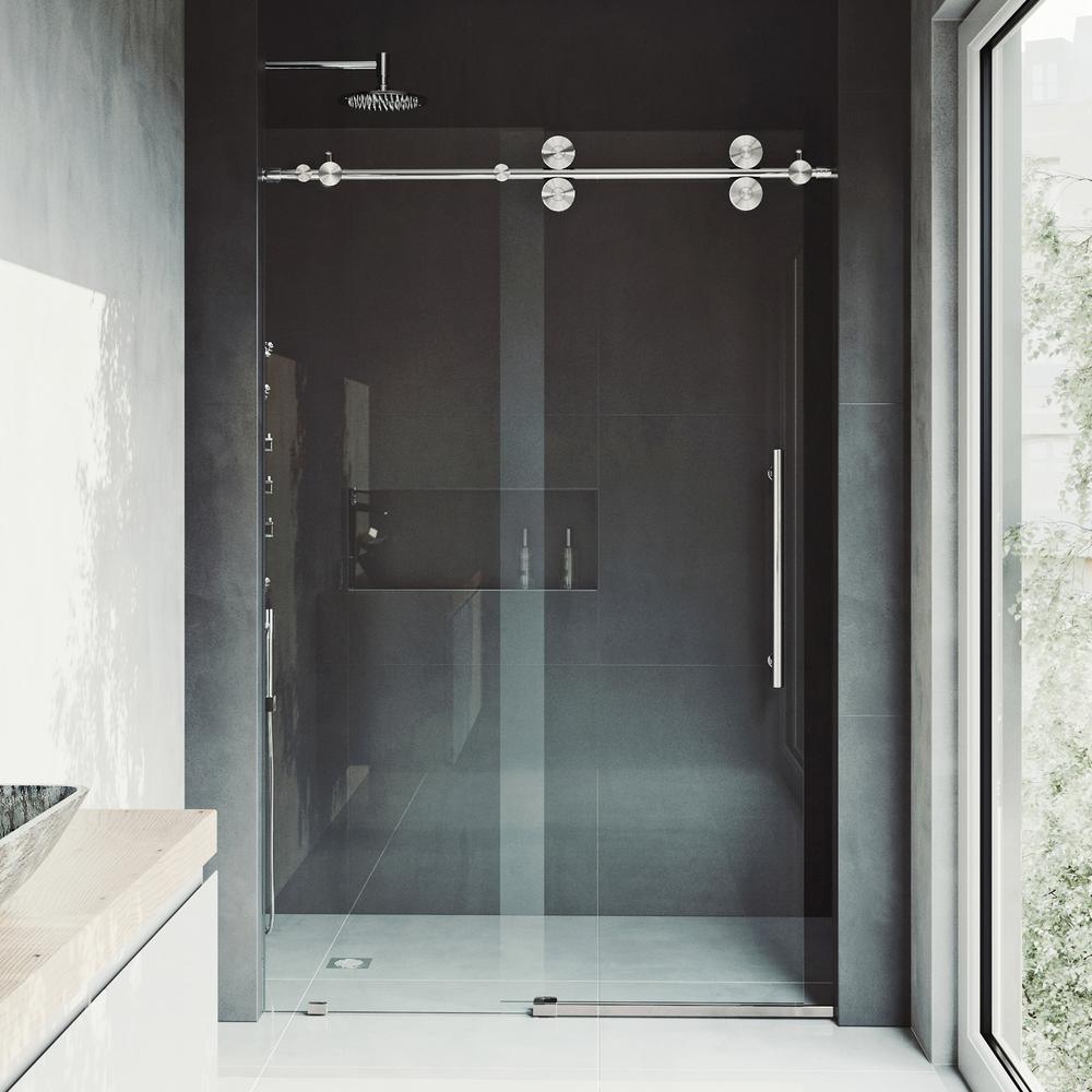 With its classic roller sliding door and sleek modern design, the VIGO Elan Frameless Sliding Shower Door provides the ultimate in contemporary design for your bathroom. This shower door is crafted with quality tempered glass and 304-series stainless steel hardware and features an eye-catching round roller disk sliding system and sleek door handle. To customize this door, install it with a right or left side opening.