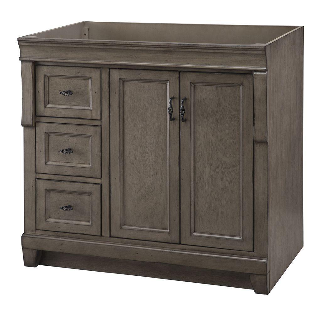 Naples 36 in. W Bath Vanity Cabinet Only in Distressed Grey with Left Hand Drawers