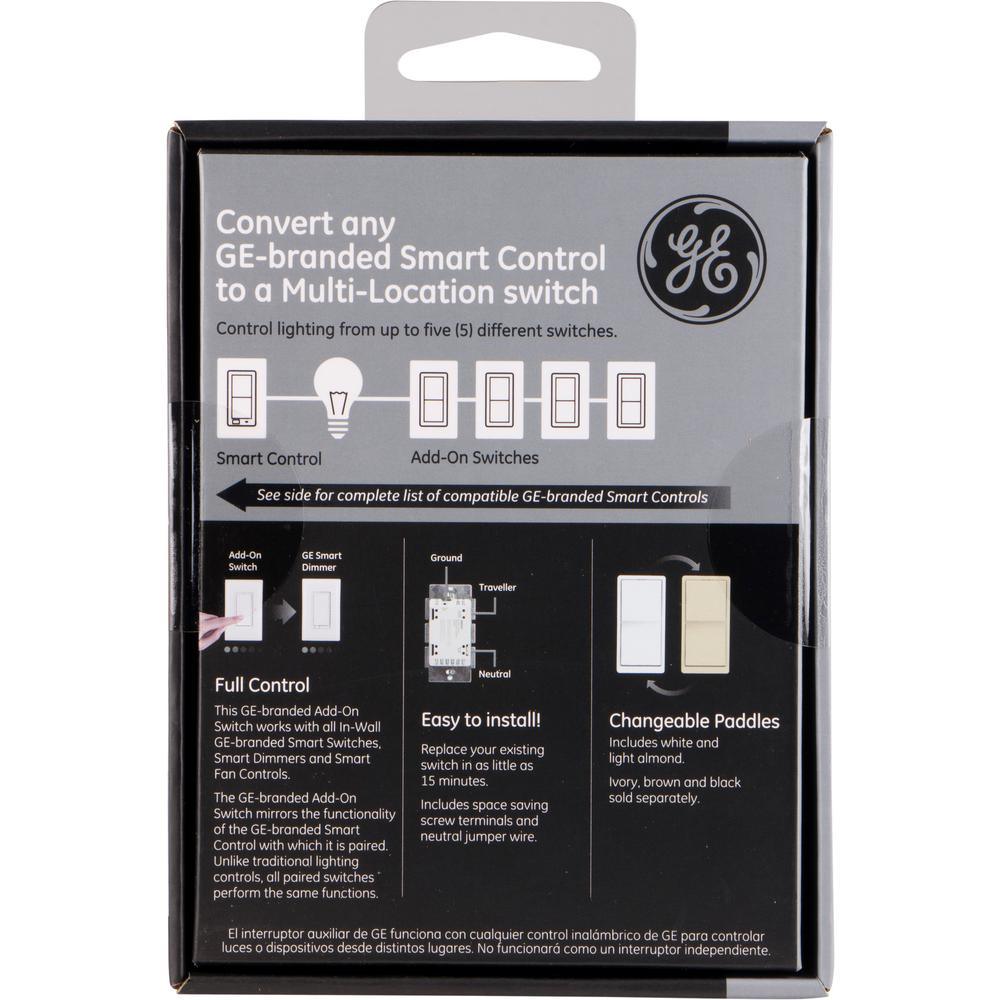 Transform any home into a smart home with the GE Smart Lighting Control Add-On Paddle Switch. The GE Smart Lighting Control Paddle Switch replaces your current switch, uses existing wiring and provides your home with ultimate flexibility when combined with a GE Z-Wave, ZigBee or Bluetooth In-Wall Smart Switch, Dimmer or Fan Control. The GE Smart Lighting Control Paddle Switch operates as your home automation system primary control, requiring three-way or four-way wiring configurations. Three-way wiring configuration turns the light or appliance on or off from two separate locations. Four-way wiring configuration turns the light or appliance on or off from three separate locations. With an interchangeable paddle design, the paddle switch matches most standard wall plates and home decor, and includes white and light almond paddles that will match most standard wall plates (wall plate not included). This product is ALEXA COMPATIBLE, however, it REQUIRES AN ALEXA SUPPORTED HUB for voice control with Echo Products (Alexa device and hub sold separately). **This product CANNOT connect directly with ECHO PLUS (Only ZigBee products can connect directly to Echo Plus).**
