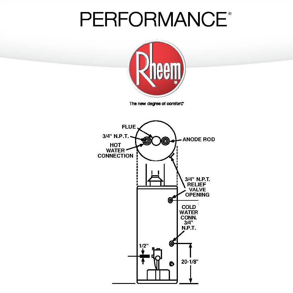 The Rheem Performance 40 Gal. Mobile Home atmospherically vented water heater featuring a convertible gas control valve for use with either natural gas or liquid propane. The water heater comes with a 34,000 BTU/hour environmentally friendly low NOx burner that provides ample hot water for households with 2 to 4 people. Factory installed temperature and pressure relief valve. Piezo ignition systems for no match lighting.