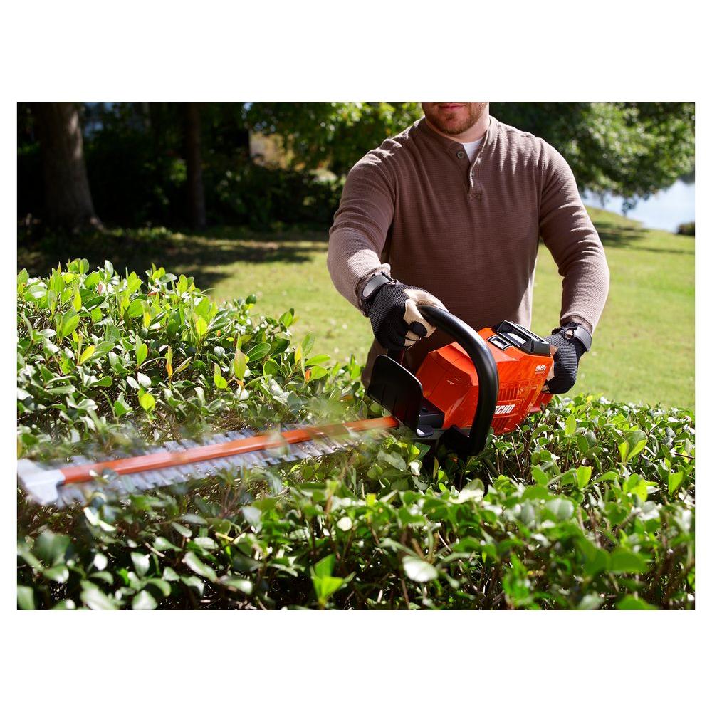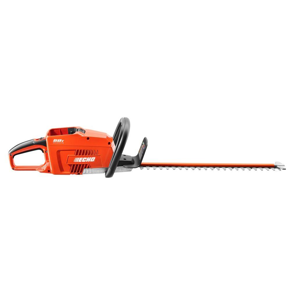 The ECHO 58-Volt Cordless Hedge Trimmer offers an exceptionally advanced, professional-grade, high-voltage cordless design. Featuring a unique brushless motor designed to deliver superior power, run time and durability, the ECHO Hedge Trimmer can handle even the thick branches up to 3/4 in. Dia. Equipped with 24 in. dual action blades, this Hedge Trimmer provides extended reach and low vibration, and for continuous cutting, it is also equipped with automatic anti-jam technology. The Hedge Trimmer is backed by an industry-leading 90-day money-back guarantee, a 5-year consumer warranty and a 2-year commercial warranty.